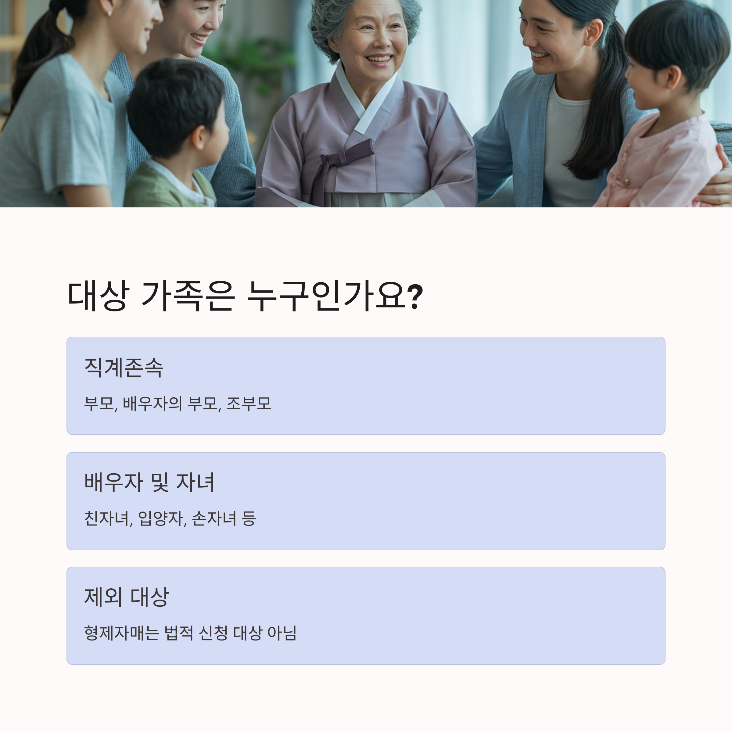 ✔ 대상 가족: 부모, 배우자, 자녀, 배우자의 부모 등