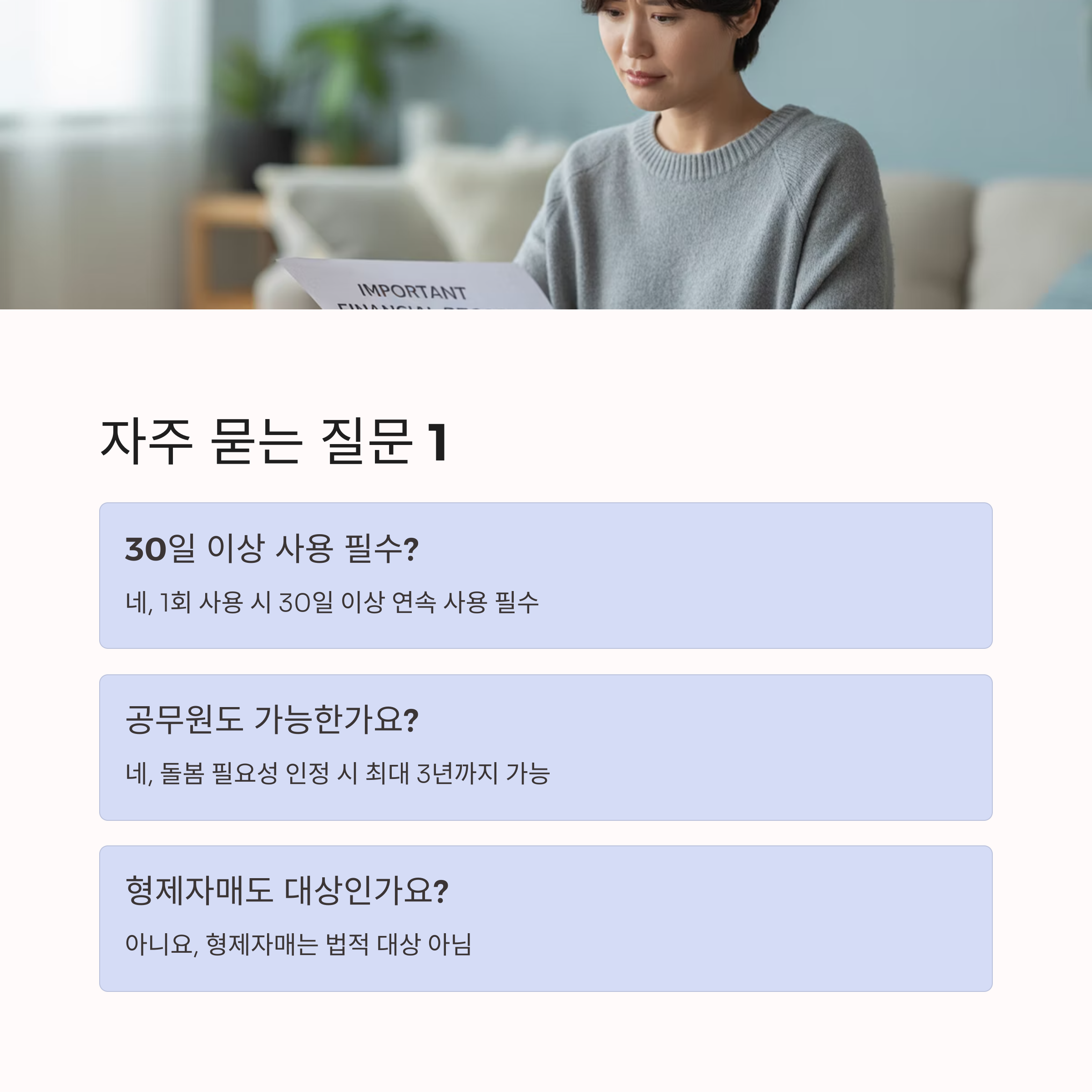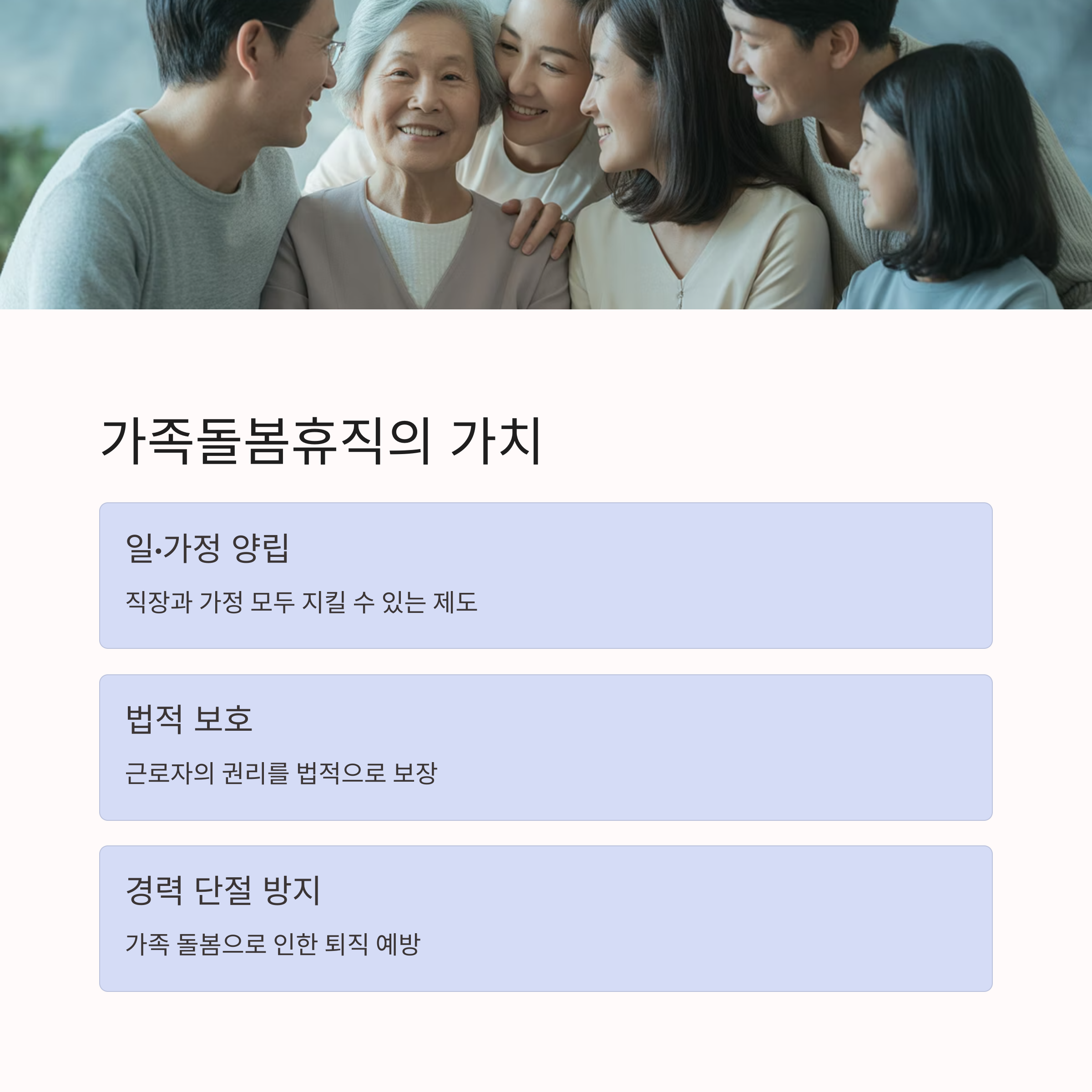 ✔ 가족돌봄휴가(단기)와 휴직(장기) 병행 가능