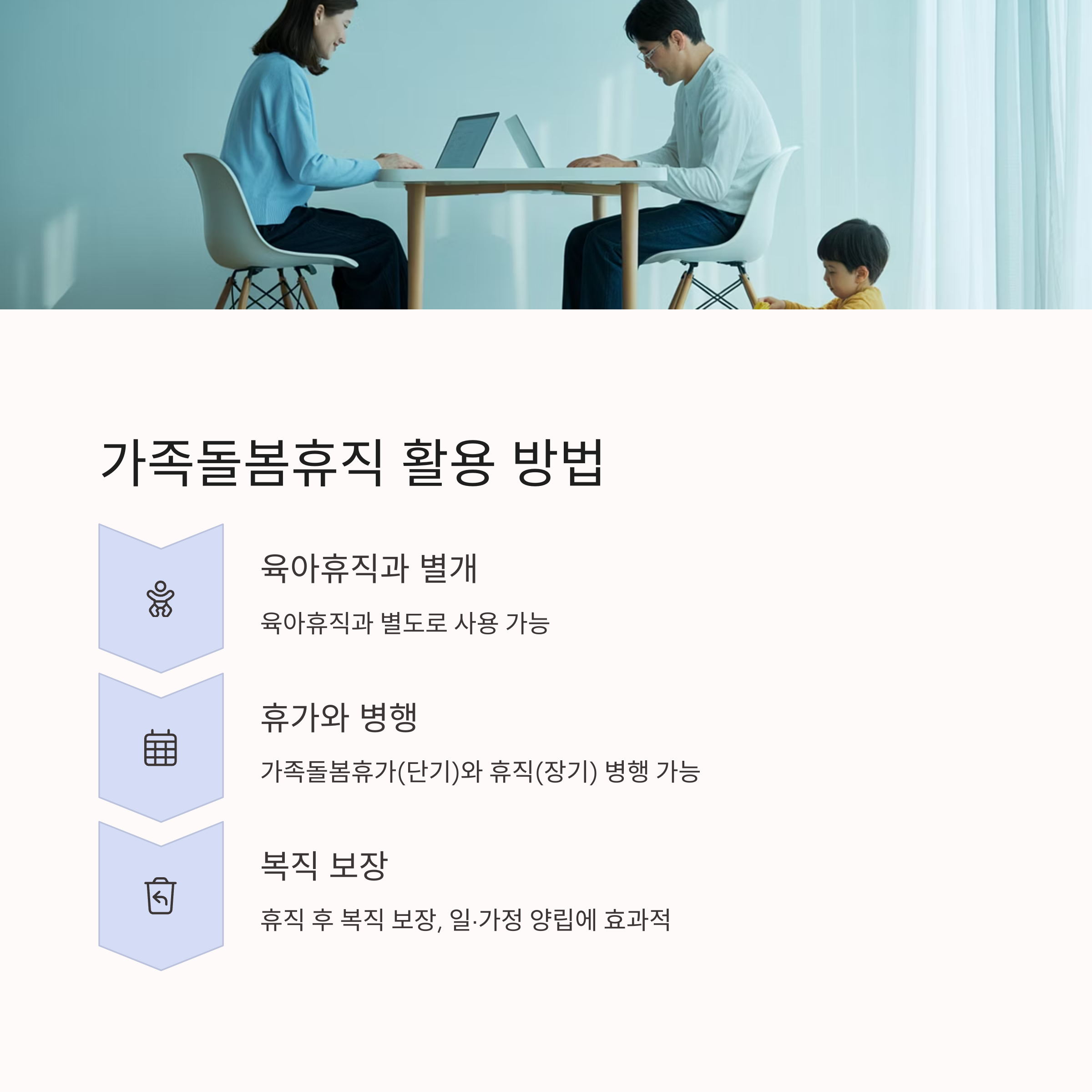 ✔ 휴직 후 복직 보장, 일·가정 양립에 효과적