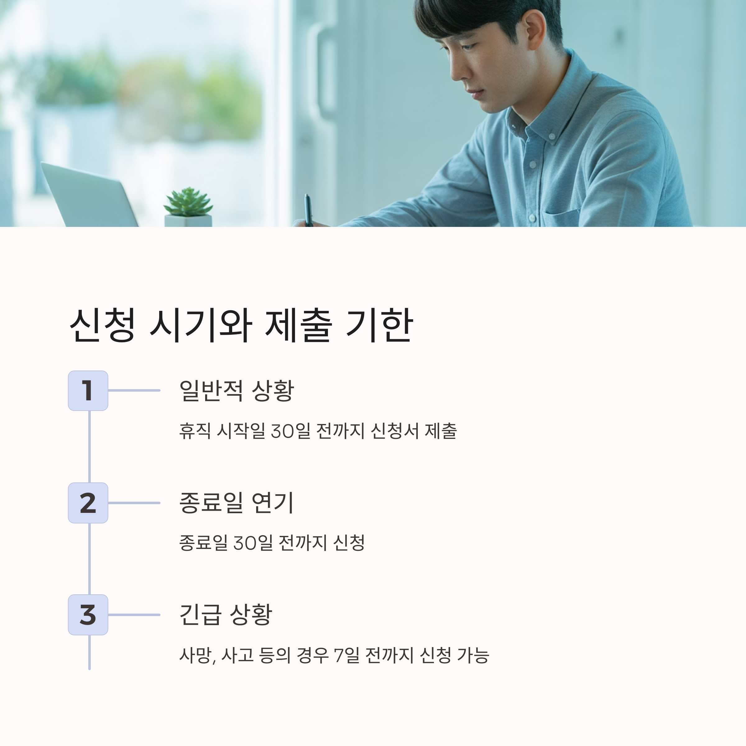 ▶ 휴직 시작일 30일 전까지 신청서 제출 필수