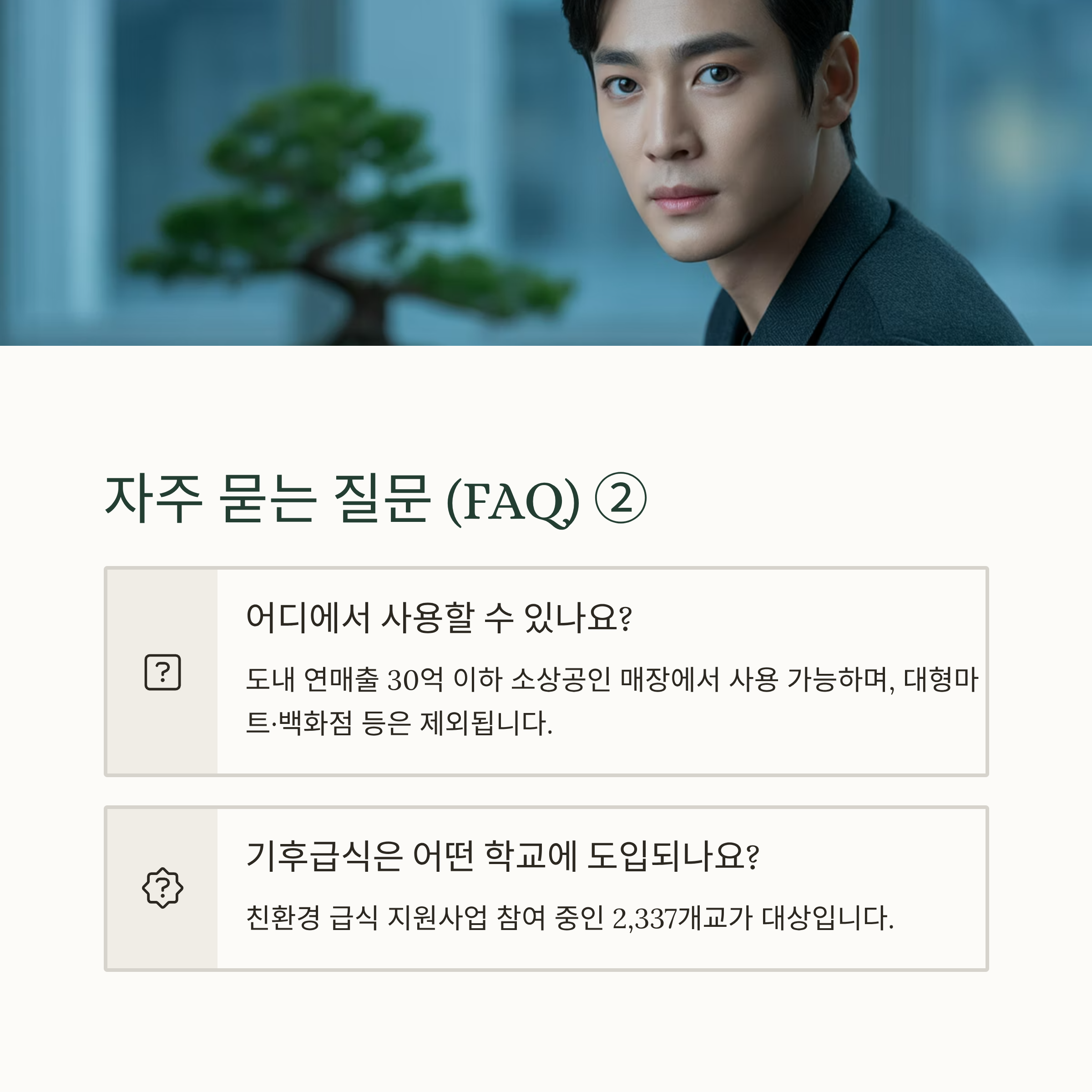 A3. 도내 연매출 30억 이하 소상공인 매장에서 사용 가능하며, 대형마트·백화점 등은 제외됩니다.