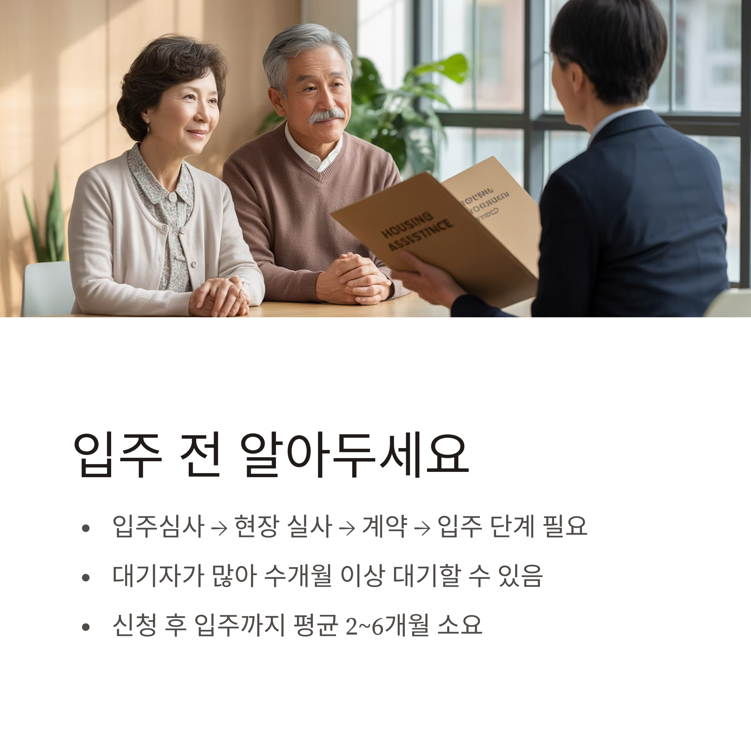 ✔ 신청 후 입주까지 평균 2~6개월 소요