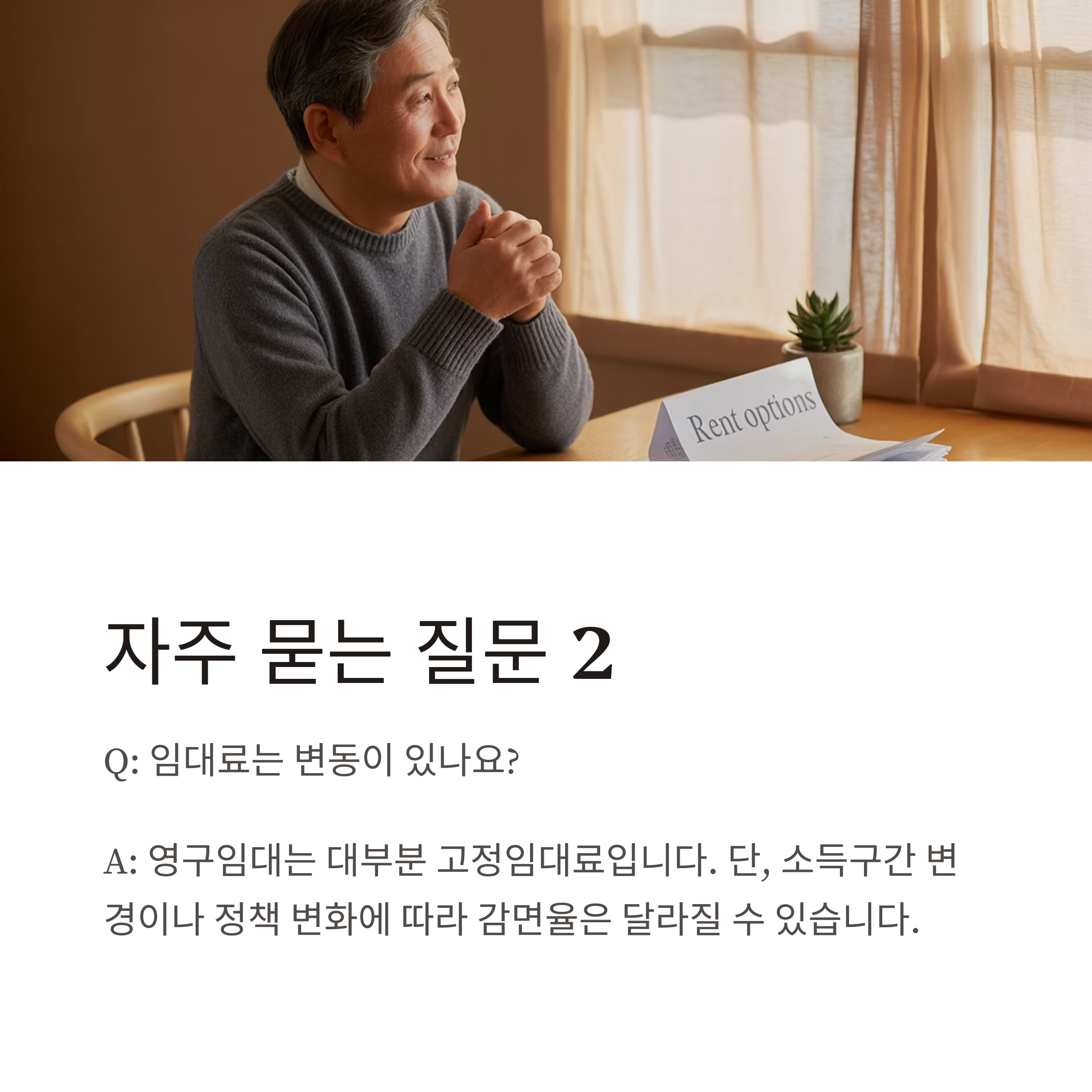 A2. 영구임대는 대부분 고정임대료입니다.