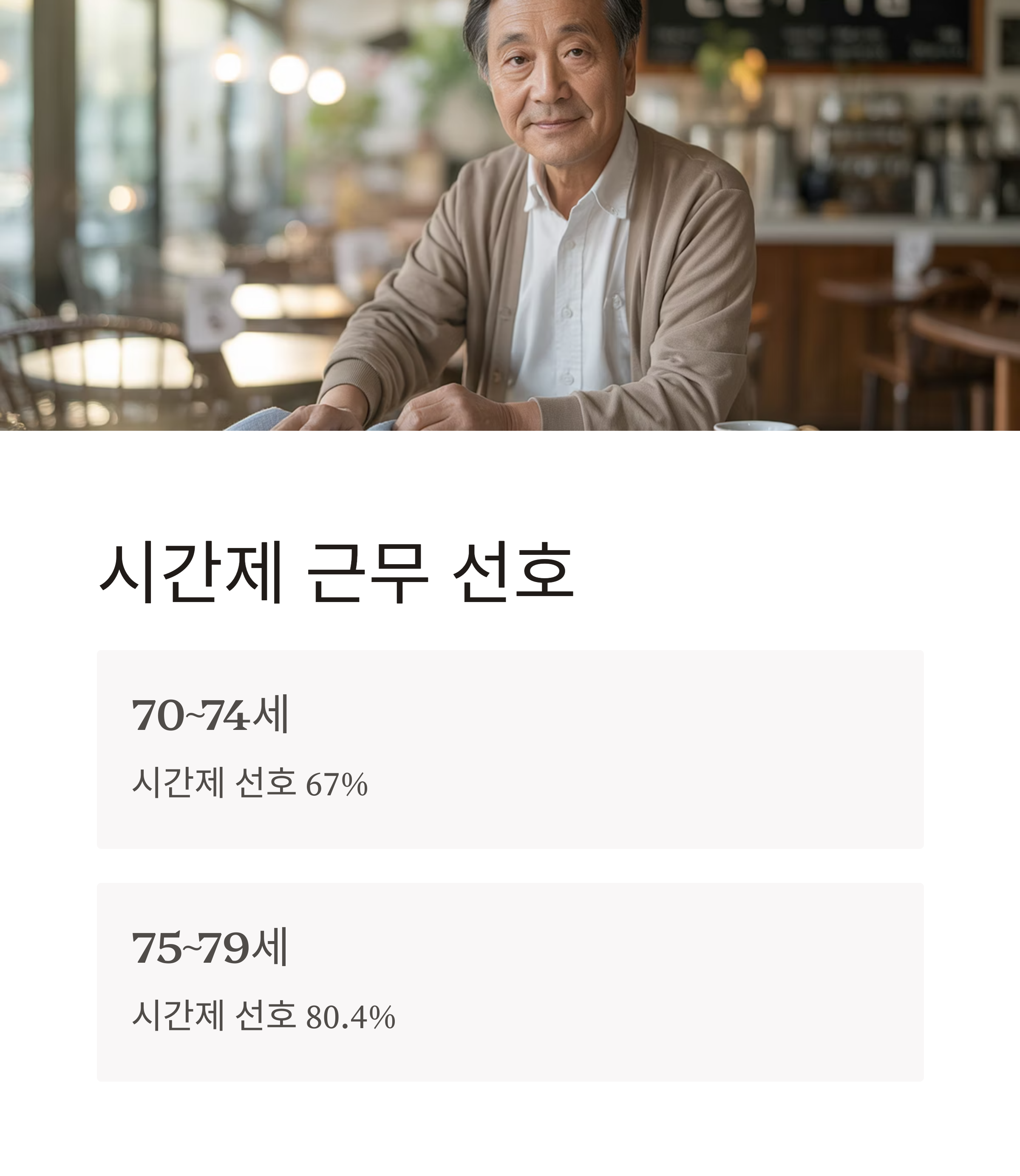 A4. 대부분 시간제 근무를 선호하며, 특히 75세 이상은 80% 이상이 단시간 근무를 원합니다.