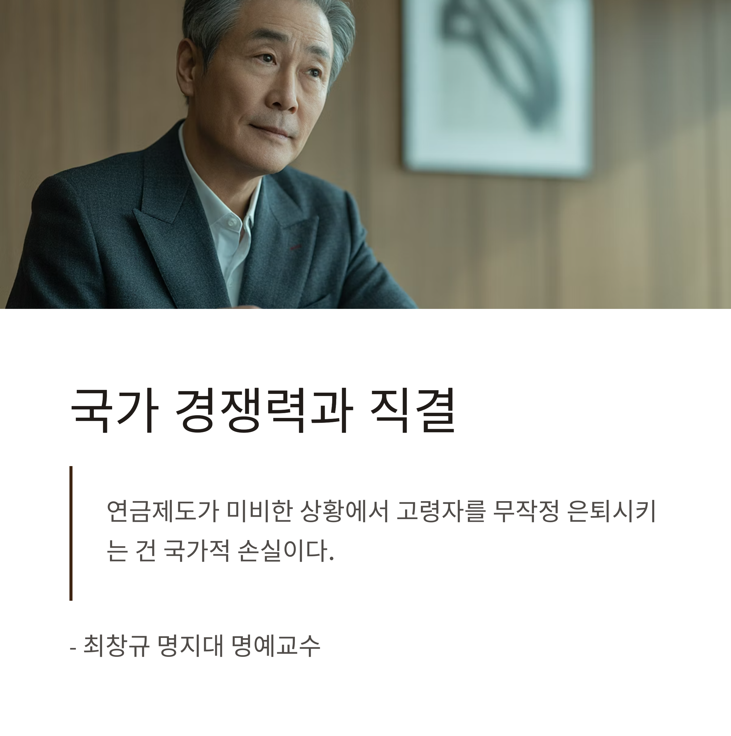 “연금제도가 미비한 상황에서 고령자를 무작정 은퇴시키는 건 국가적 손실이다.”