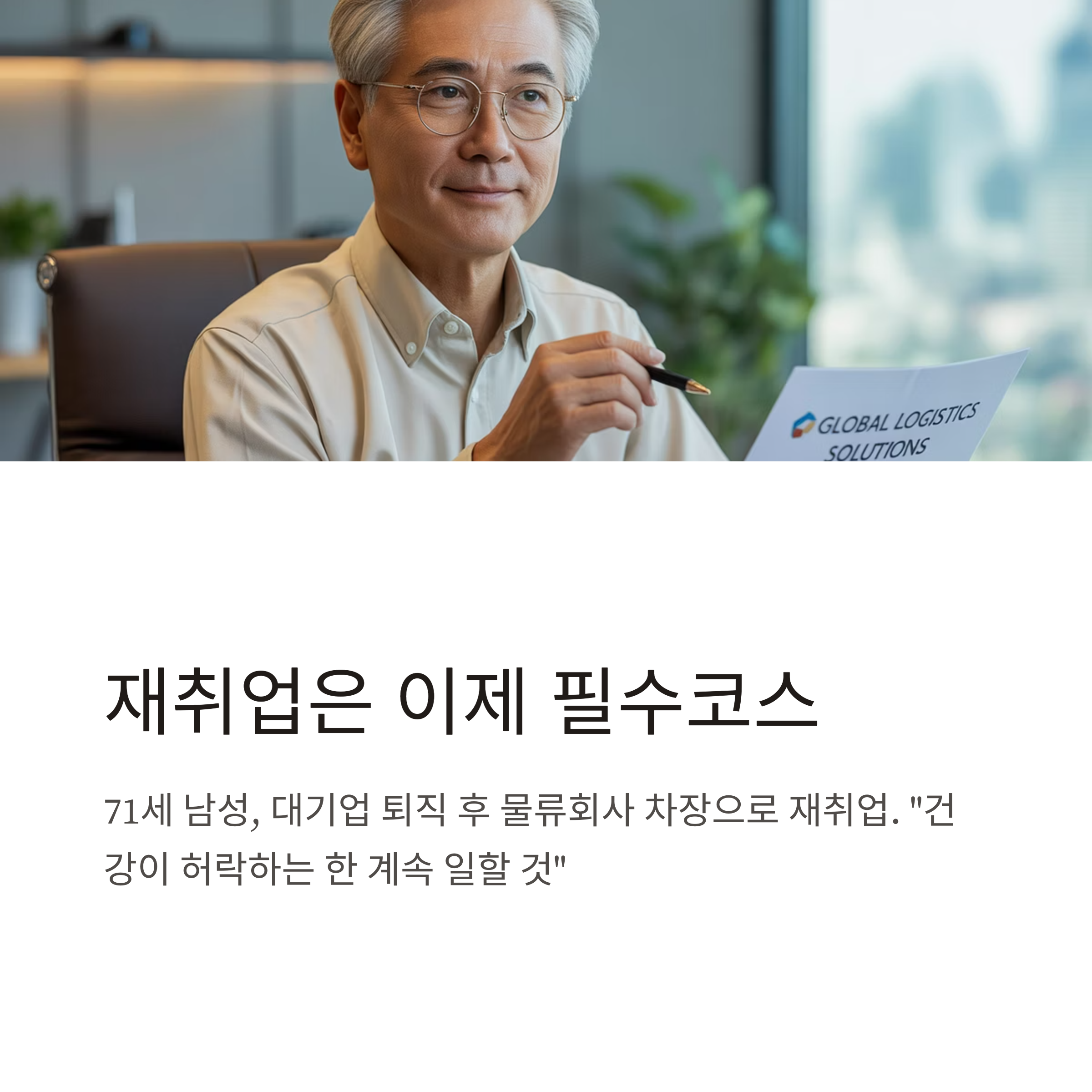 서울의 한 71세 남성은 대기업 퇴직 후 3년 만에 물류 회사에서 차장으로 다시 근무 중입니다.
