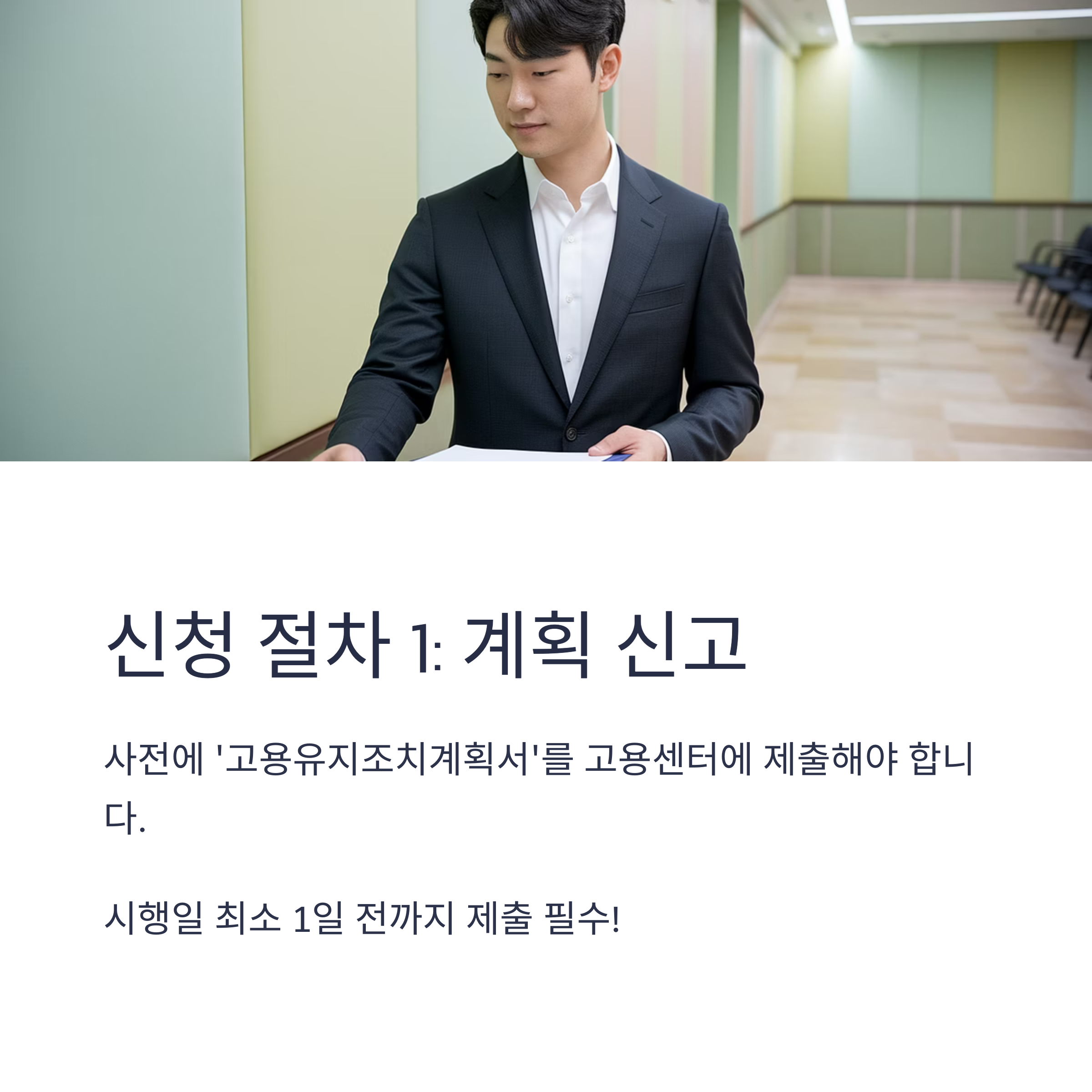 - 사전에 ‘고용유지조치계획서’를 고용센터에 제출해야 합니다.