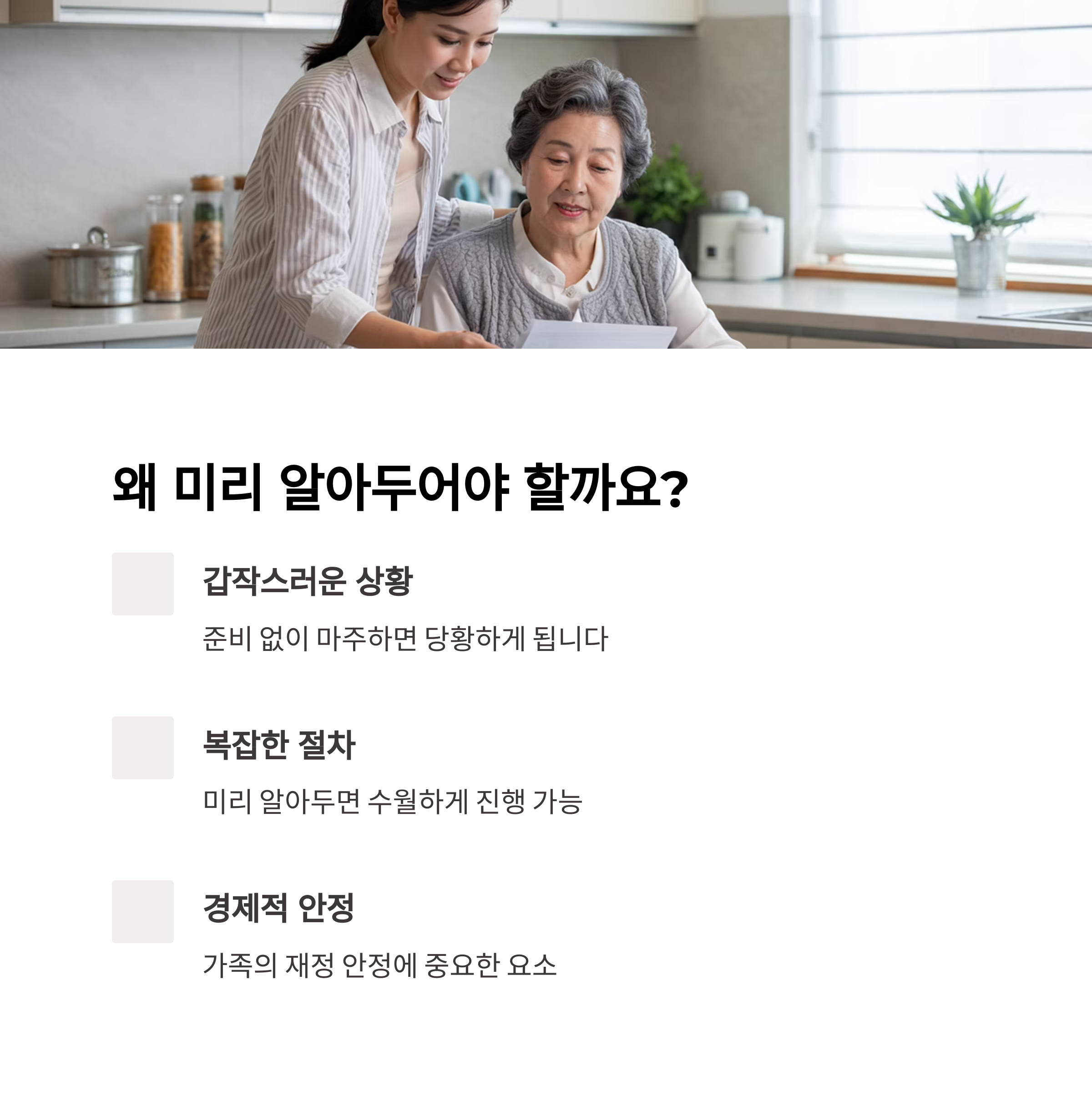 갑작스러운 상황에서 무엇을 준비해야 할지 몰라 당황하는 분들이 많습니다.
