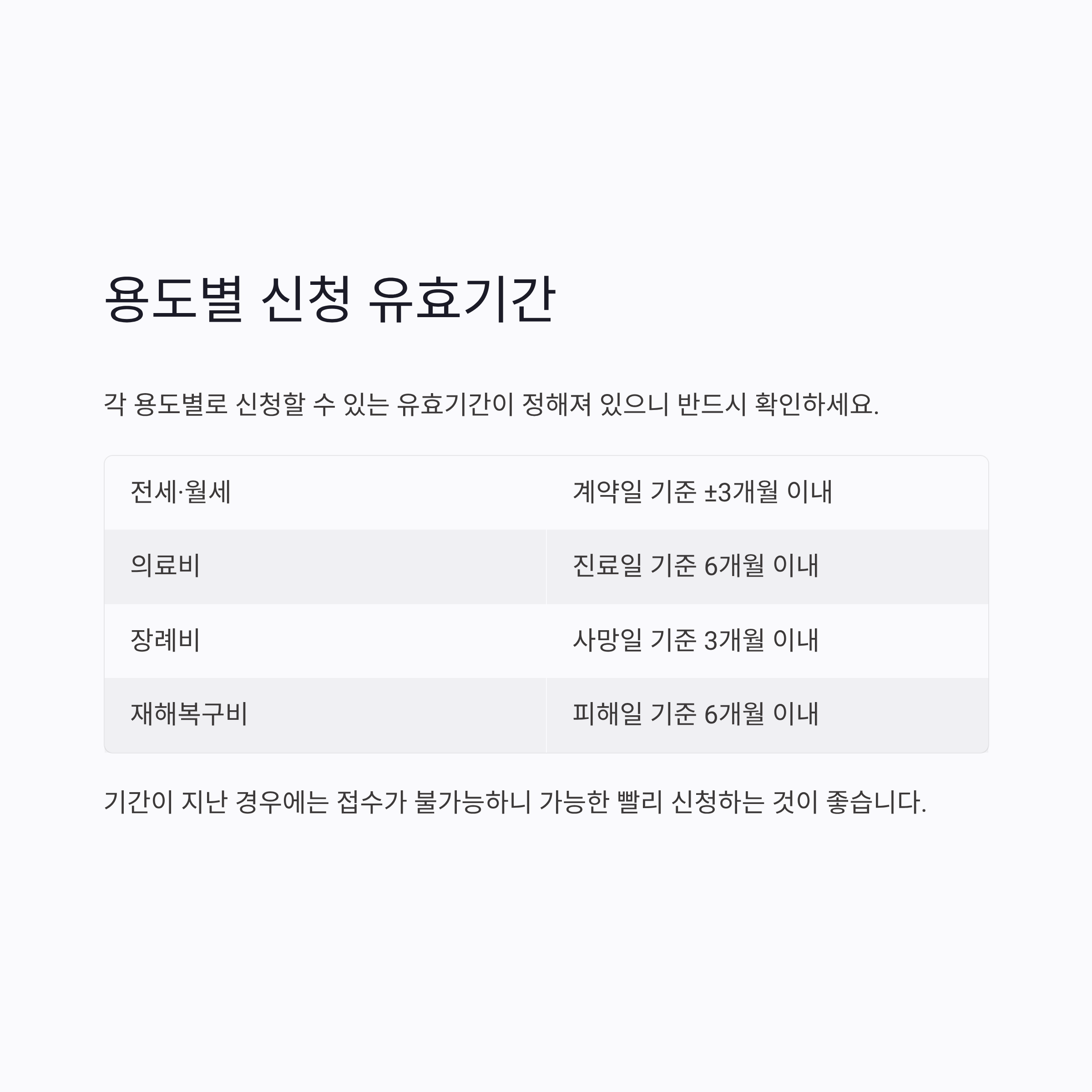 📌 기간 초과 시 접수 불가, 지출 직후 최대한 빠르게 신청해야 합니다.