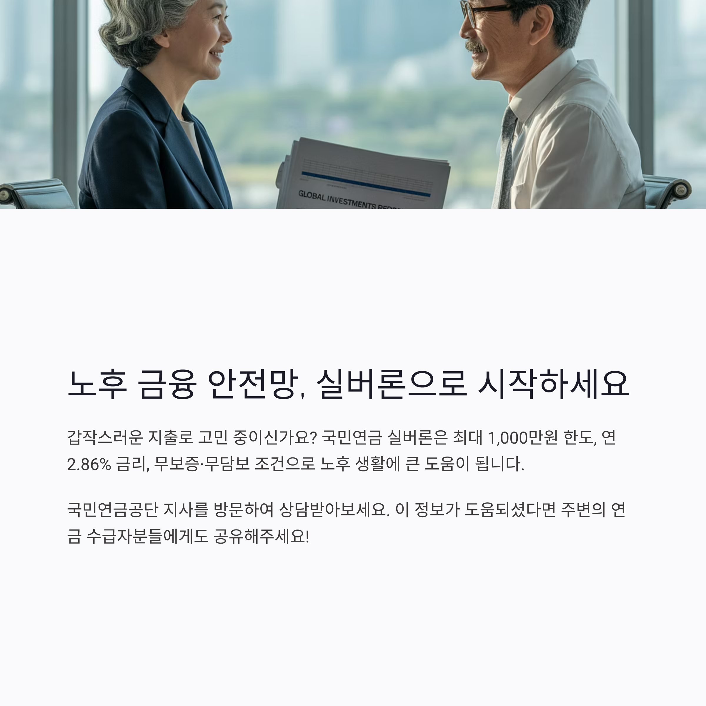 2025년 국민연금 실버론은 신용이 부족한 고령자에게 꼭 필요한 노후 금융안전망입니다.