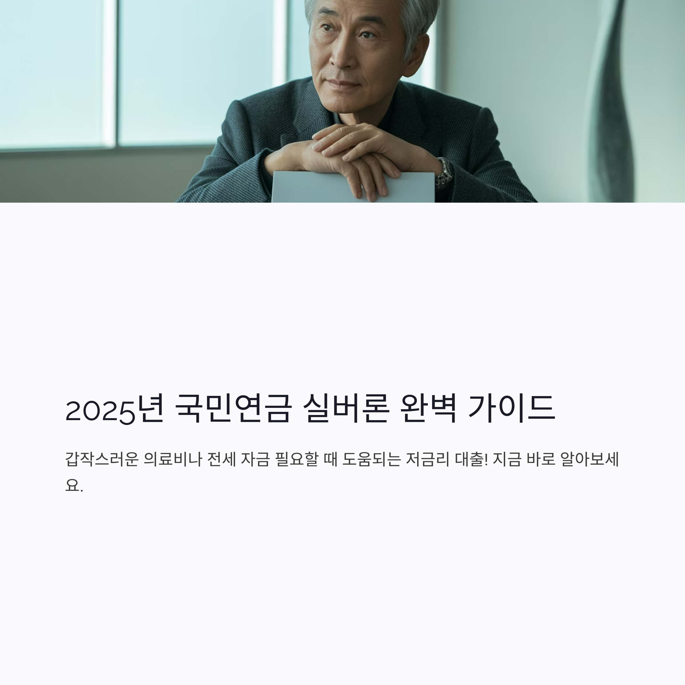 갑작스러운 의료비나 전세 자금, 준비 안 된 순간에 찾아오면 큰 부담으로 다가옵니다. 특히 고령자는 신용이나 소득 부족으로 일반 금융상품 접근이 어려워 더욱 막막한데요.이런 분들을 위해 마련된 제도가 바로 국민연금 실버론입니다.연금 수급자라면 누구나, 무담보·저금리로 이용할 수 있는 생활자금 전용 정책 대출이죠.2025년 기준 실버론의 자격 요건, 금리, 신청 방법, 제출서류까지 한 번에 정리해드립니다. 노후의 불시 자금 문제, 지금 바로 신청 대비해 보세요.