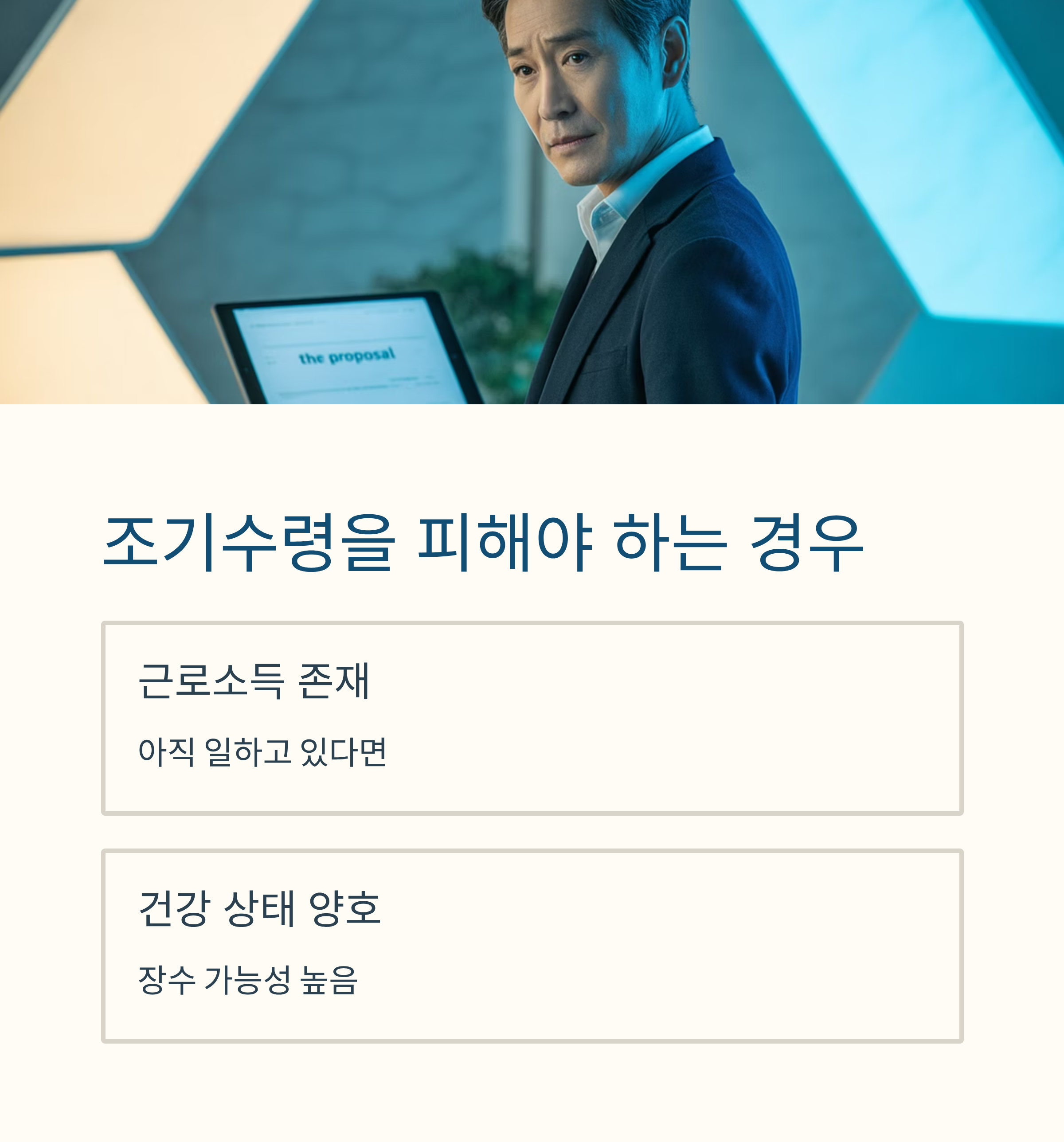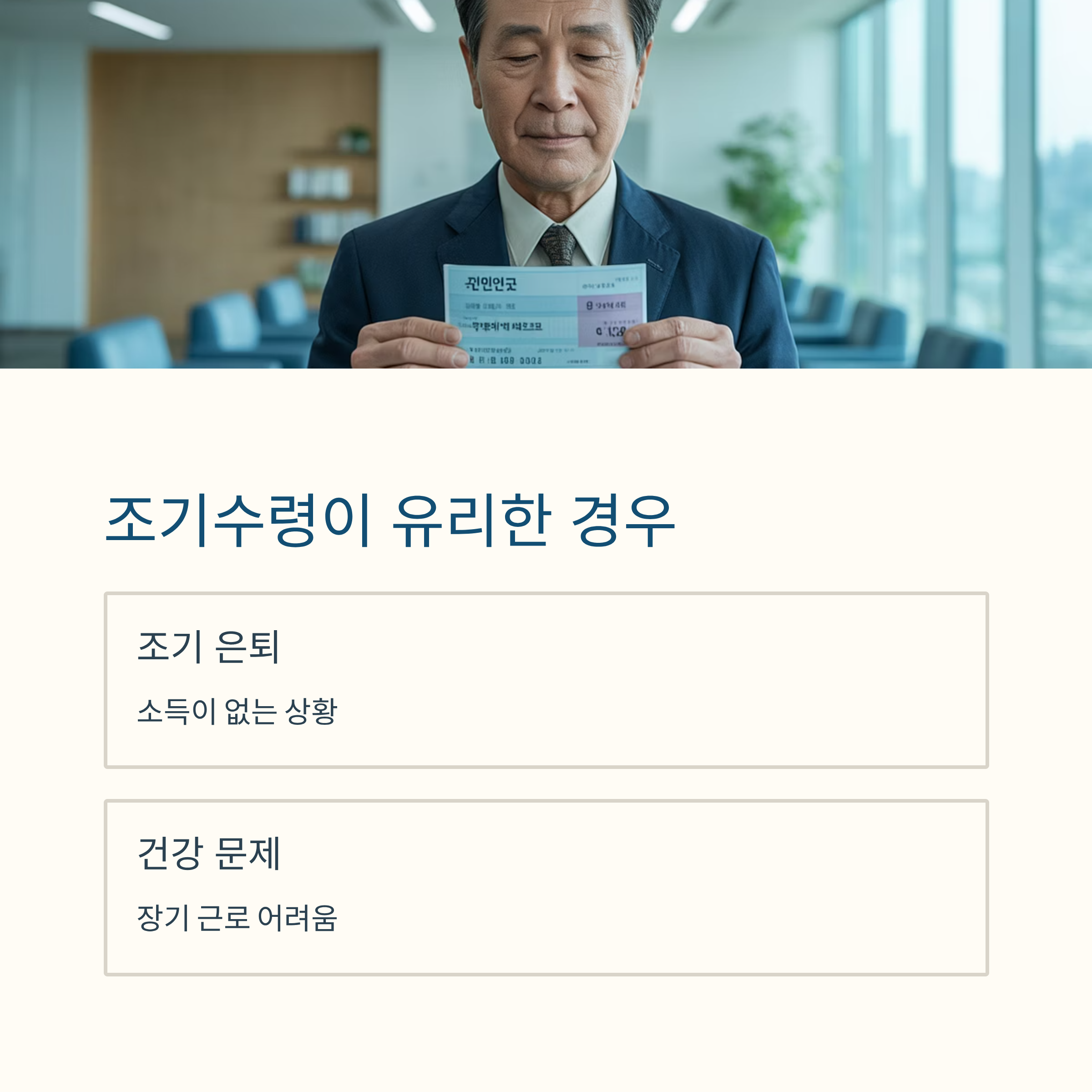 정규수령보다 수령액은 줄어들지만, 상황에 따라 조기수령이 더 현실적인 대안이 될 수 있습니다.