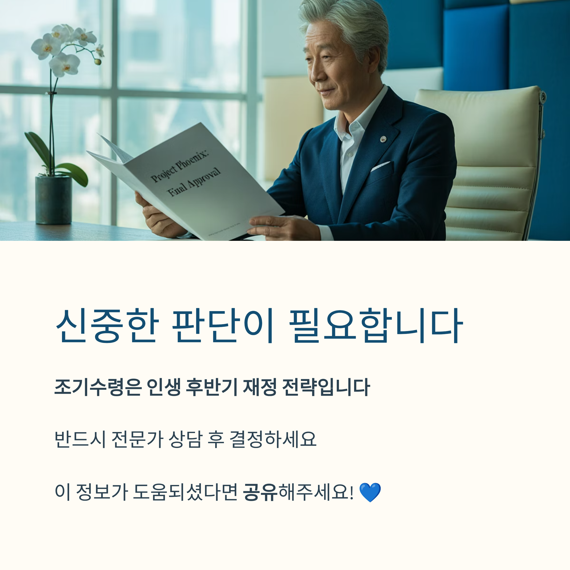 📌 결론: 소득 단절, 건강 문제, 자산 여건 등을 종합적으로 고려한 전략적 판단이 필요합니다.