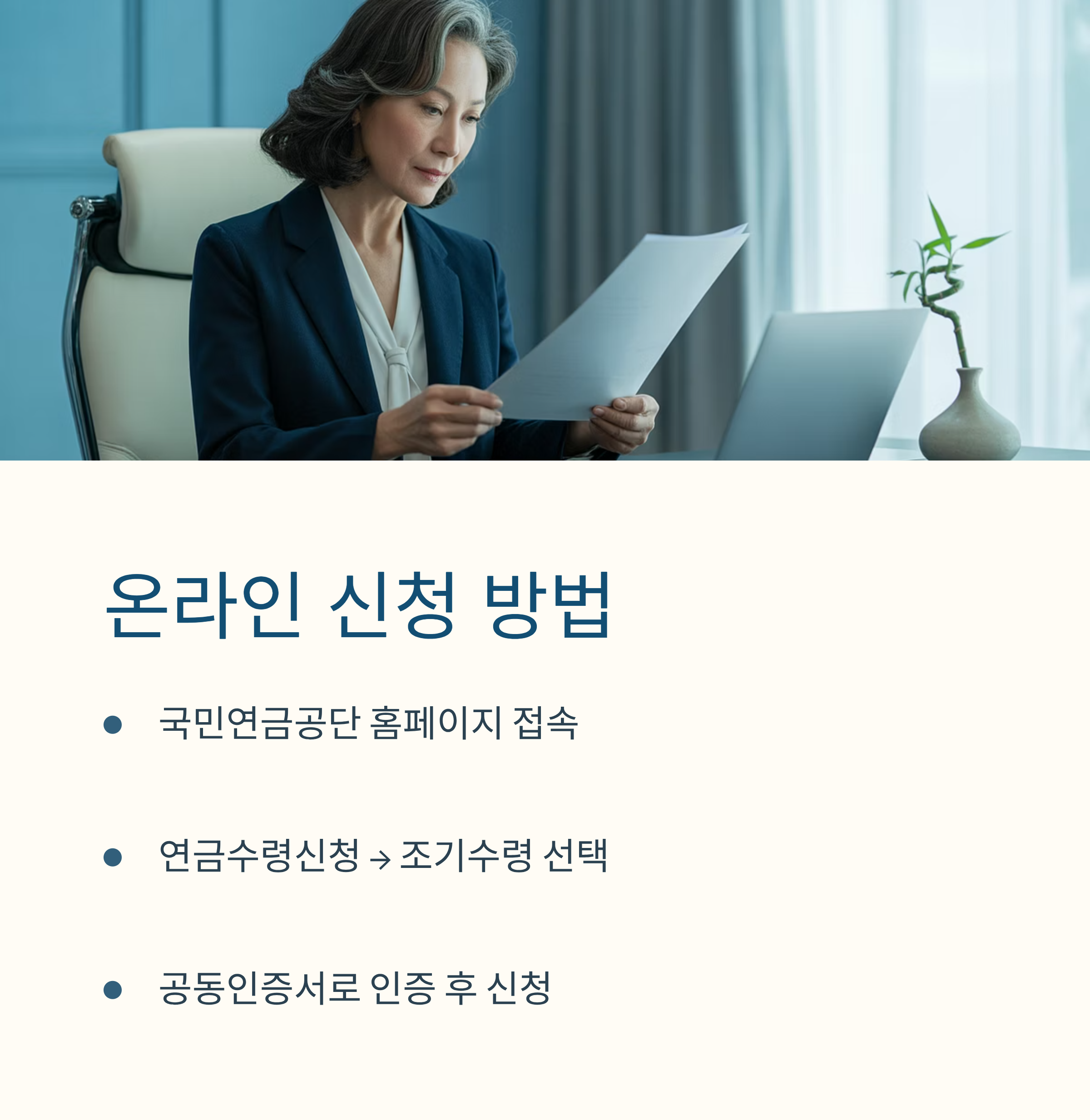 국민연금 조기수령 신청은 온라인 또는 오프라인 모두 가능합니다.