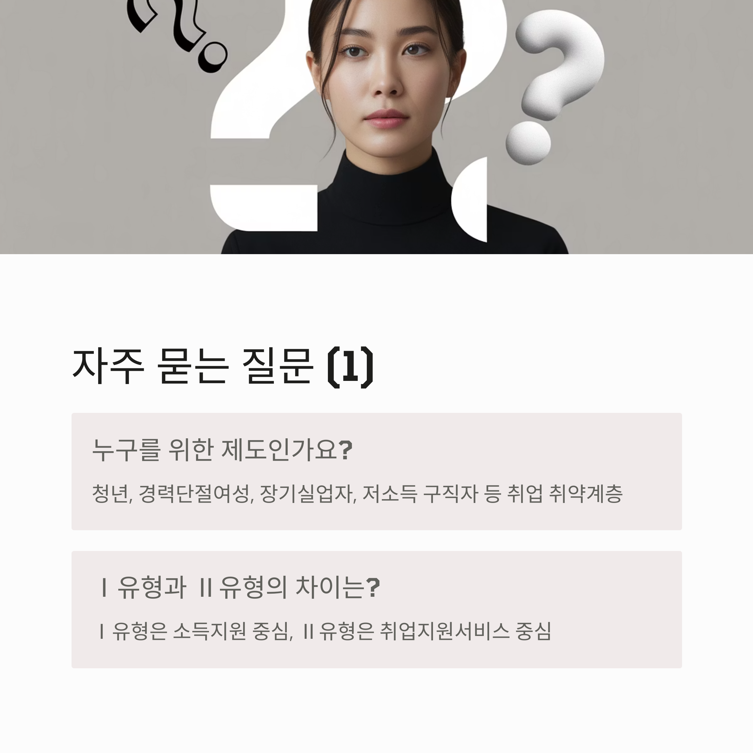 A2. Ⅰ유형은 소득지원(구직촉진수당 포함), Ⅱ유형은 취업지원서비스 중심으로 지원합니다.