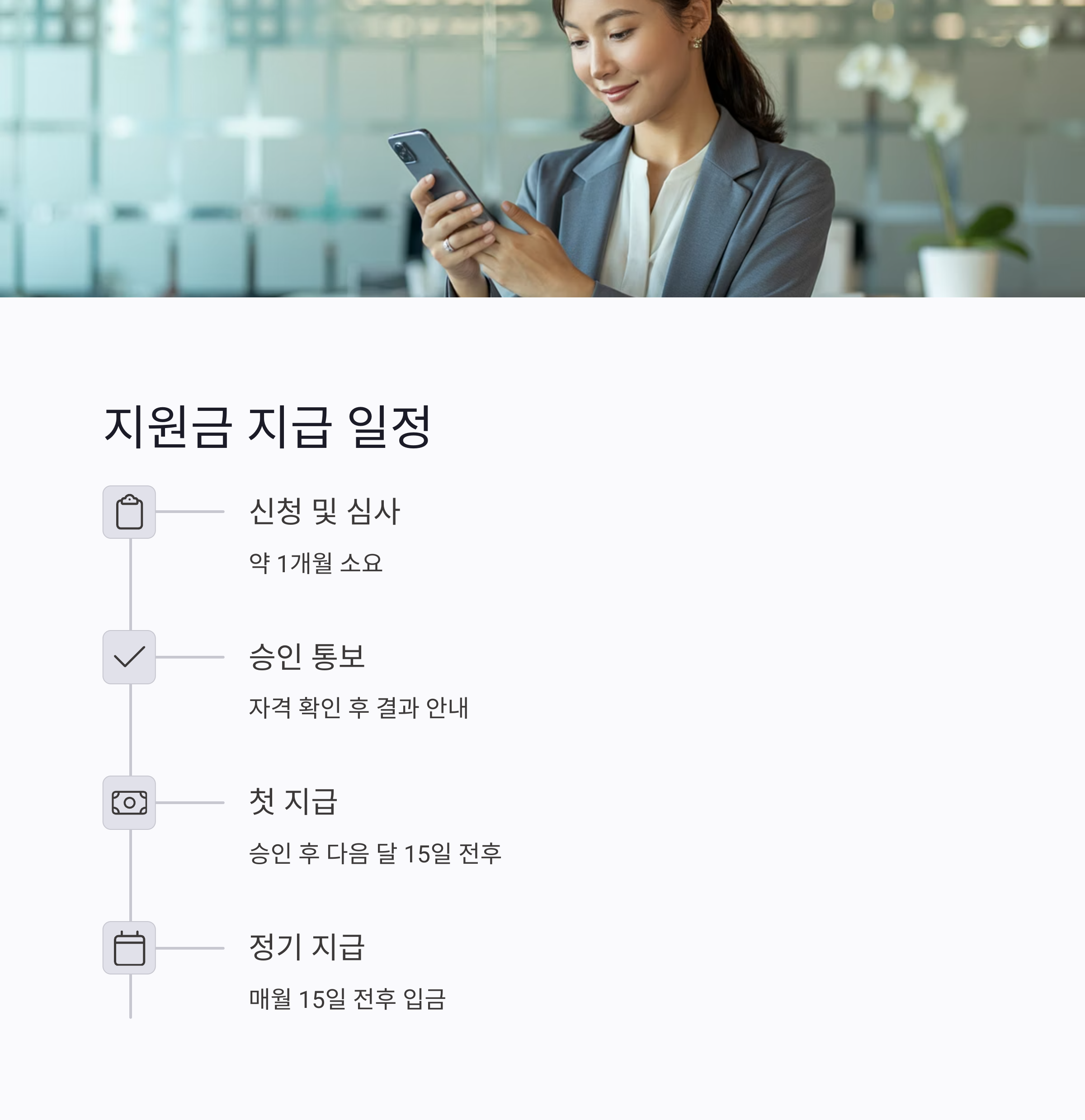 ▶ 일정과 요건만 잘 지키면 안정적으로 지원금을 받을 수 있습니다.