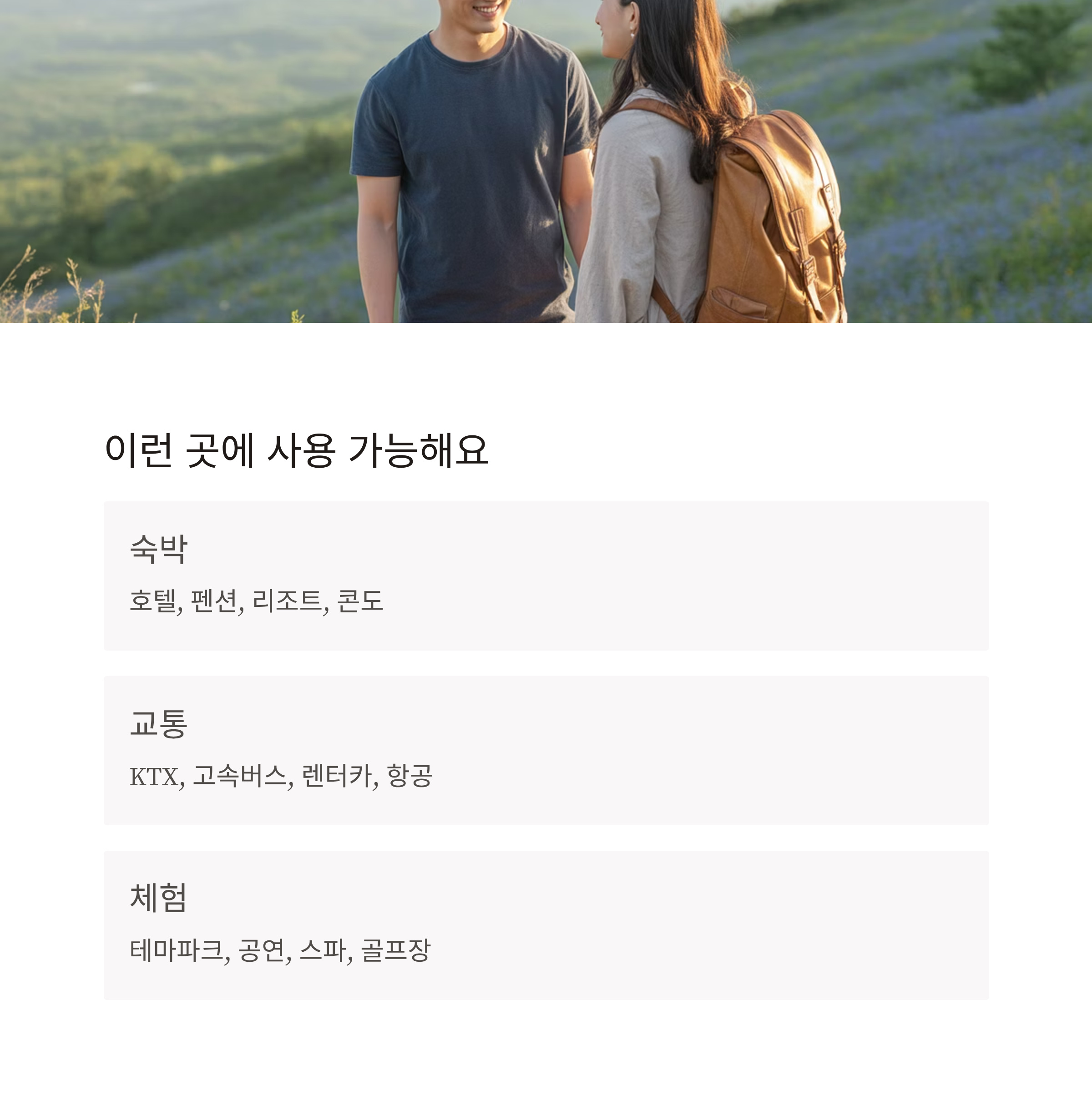 이 포인트는 지정된 온라인몰(휴가샵)에서 국내여행 상품을 구매하는 데 사용됩니다.