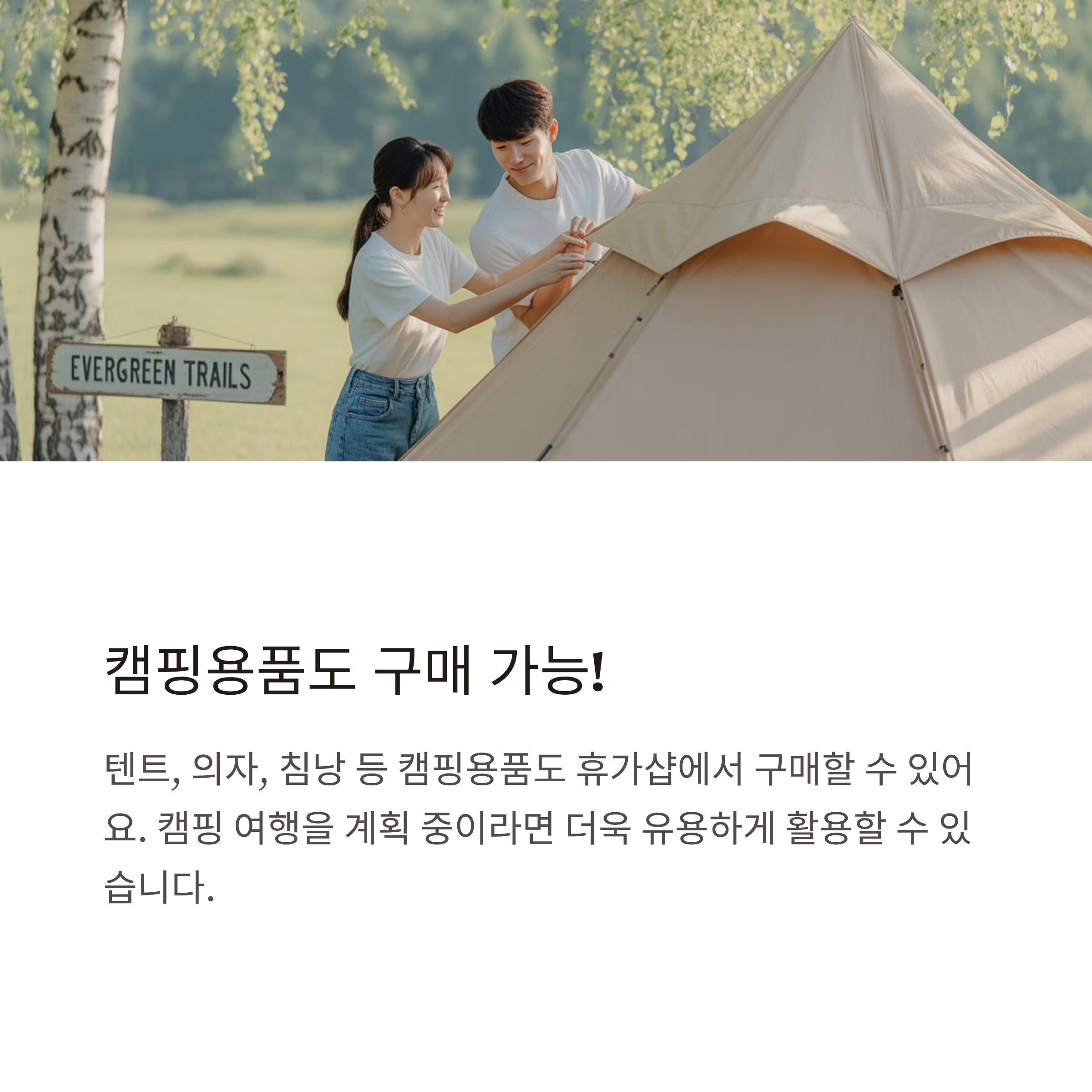 A6. 일부 캠핑용품, 체험상품 등은 구매 가능하지만, 일반 쇼핑은 제한됩니다.
