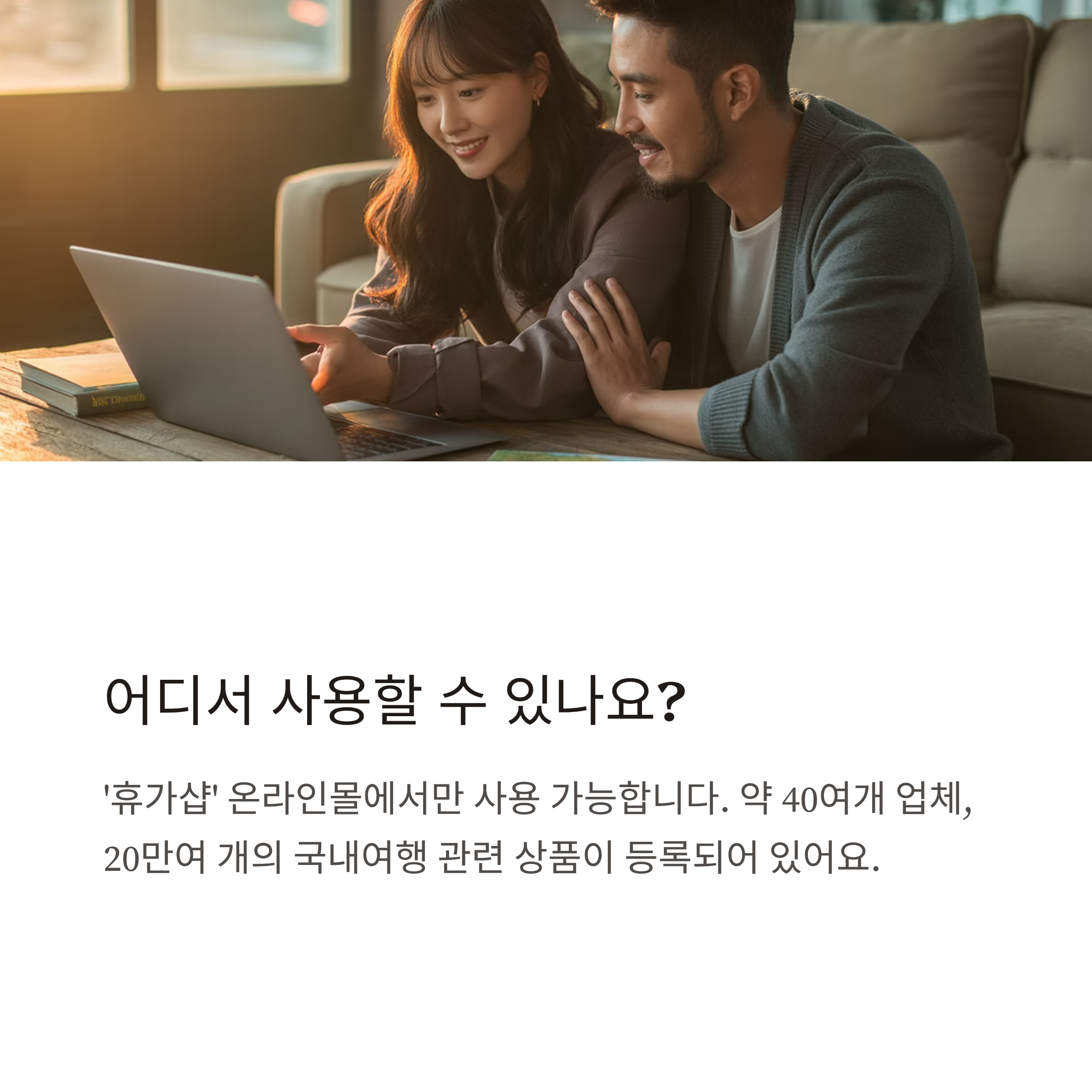 A4. 전용몰 ‘휴가샵’에서만 사용 가능하며, 입점한 여행 관련 상품에 한해 사용 가능합니다.