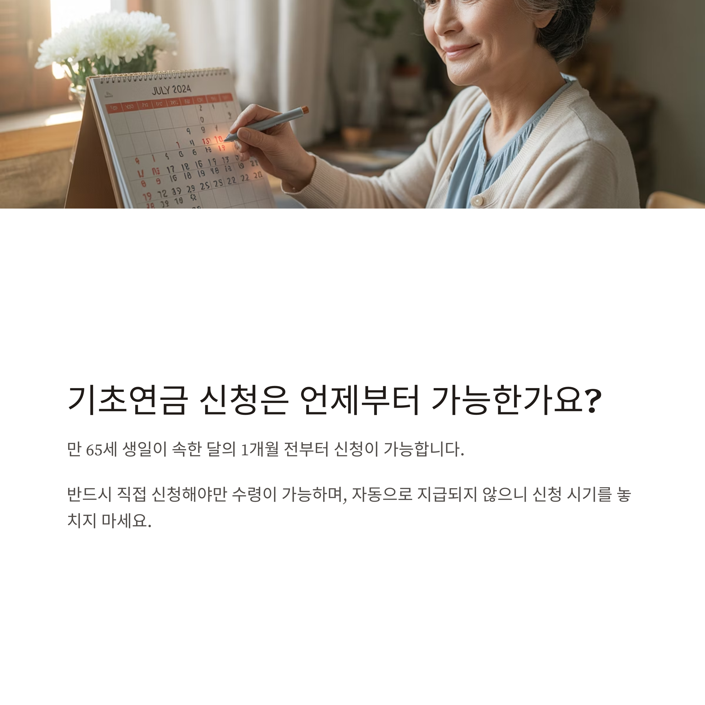 ✔ 신청 시기: 만 65세 생일이 속한 달의 1개월 전부터 가능