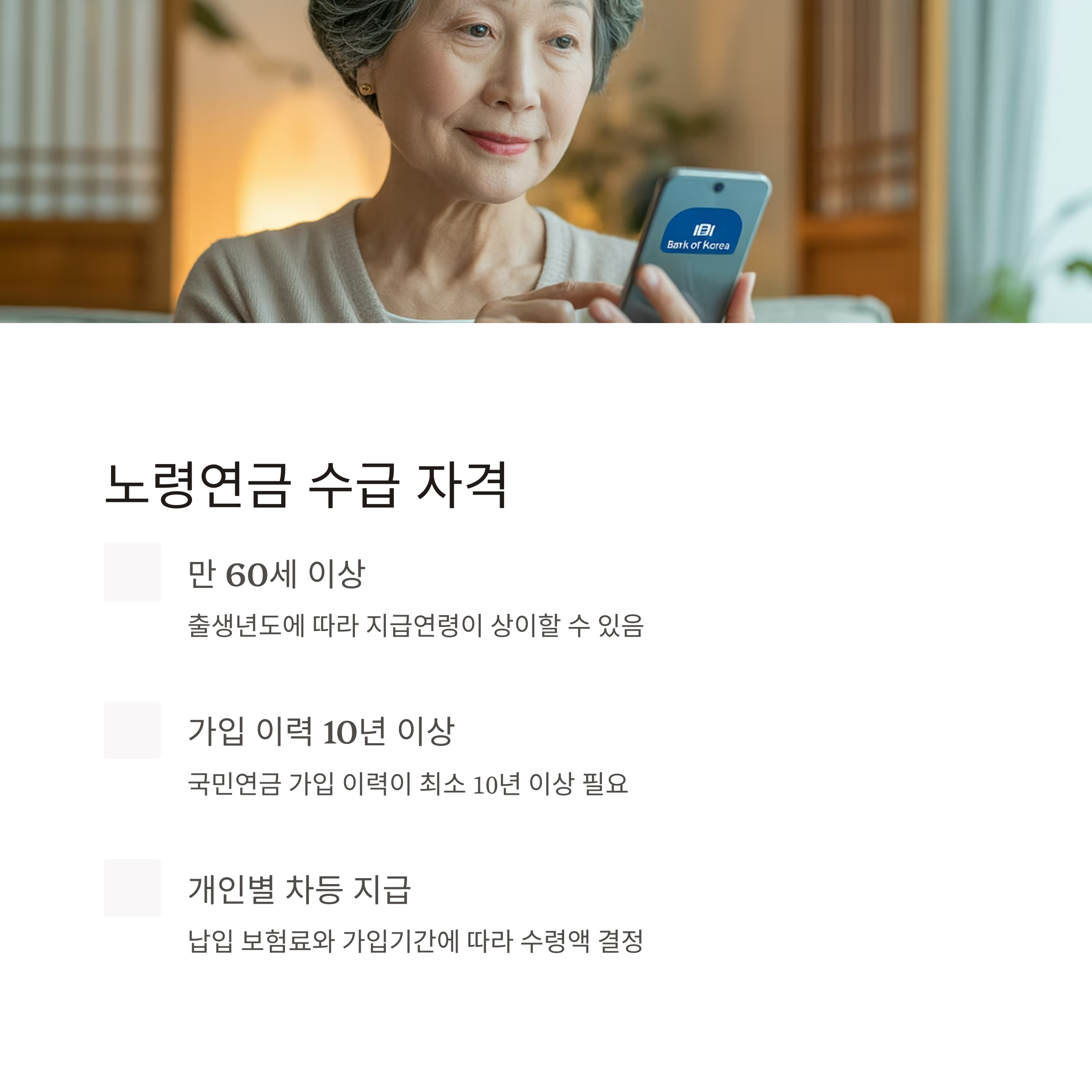 ✅ 만 60세 이상(출생년도에 따라 지급연령 상이)