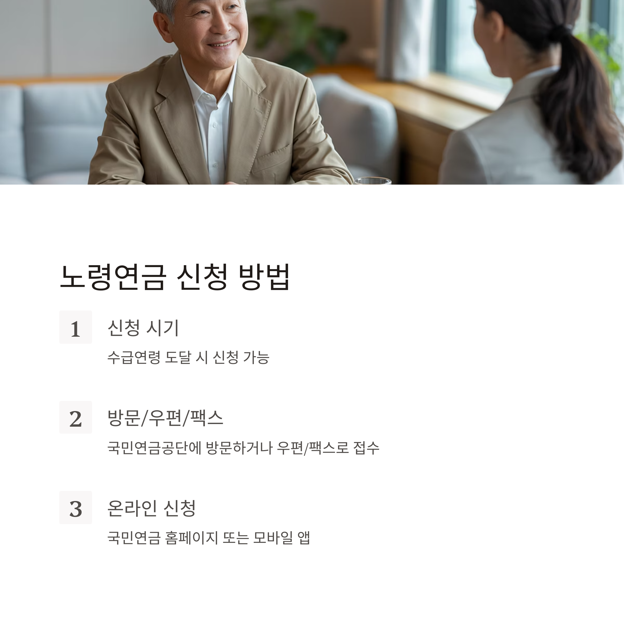 ✔ 방문 신청: 주민센터 또는 국민연금공단