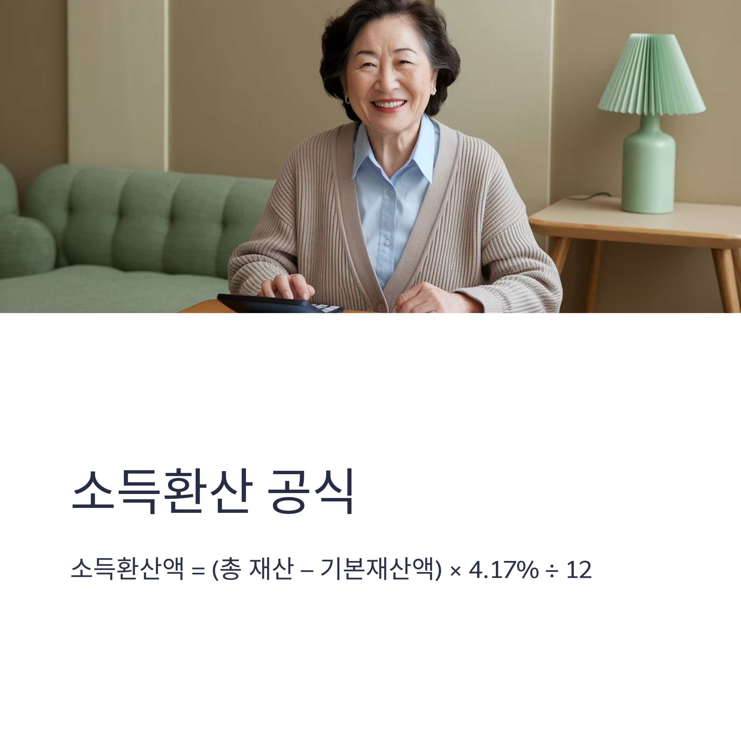 소득환산액 = (총 재산 – 기본재산액) × 4.17% ÷ 12