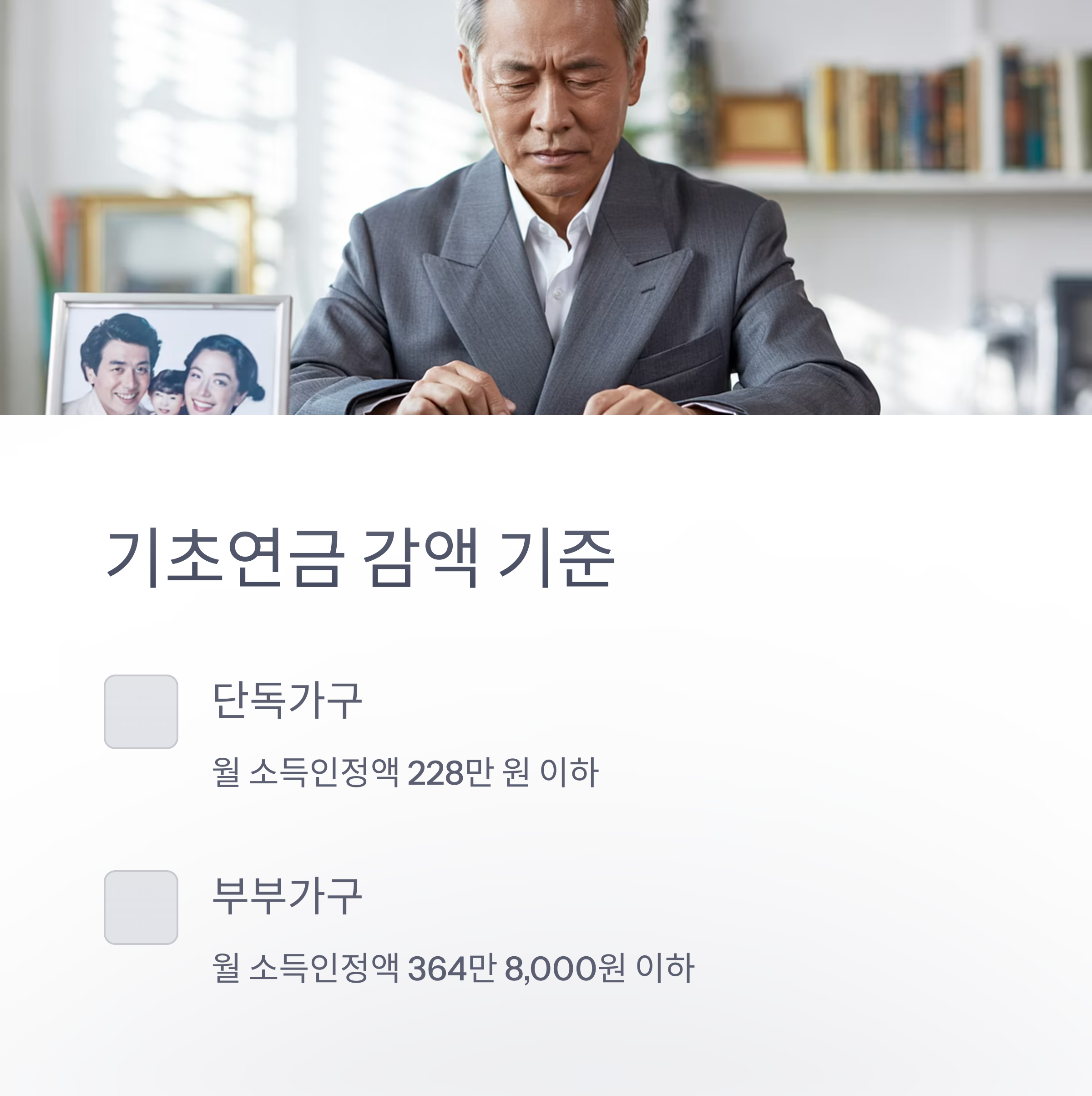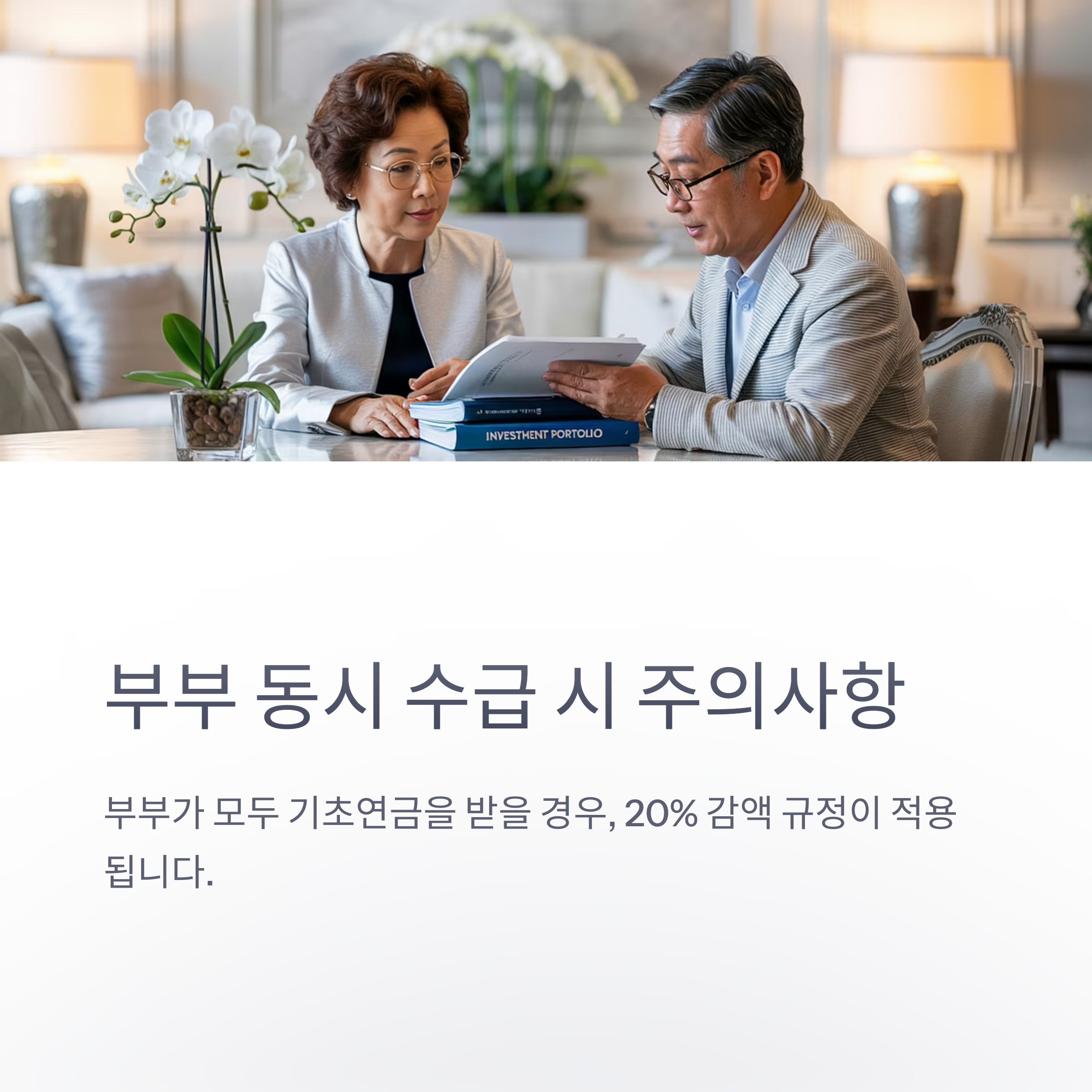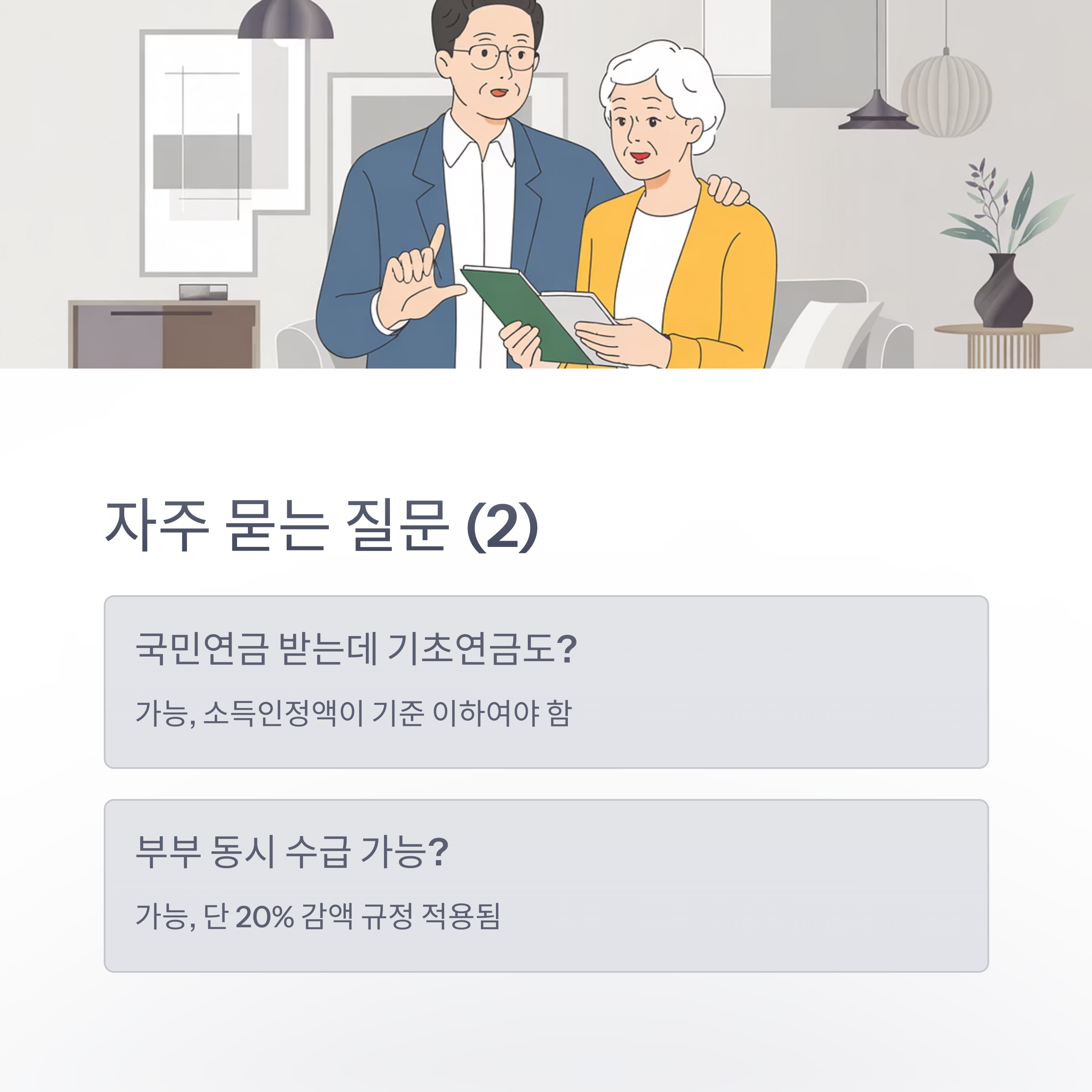 💡 부부가 모두 기초연금을 받을 경우, 20% 감액 규정이 적용됩니다.
