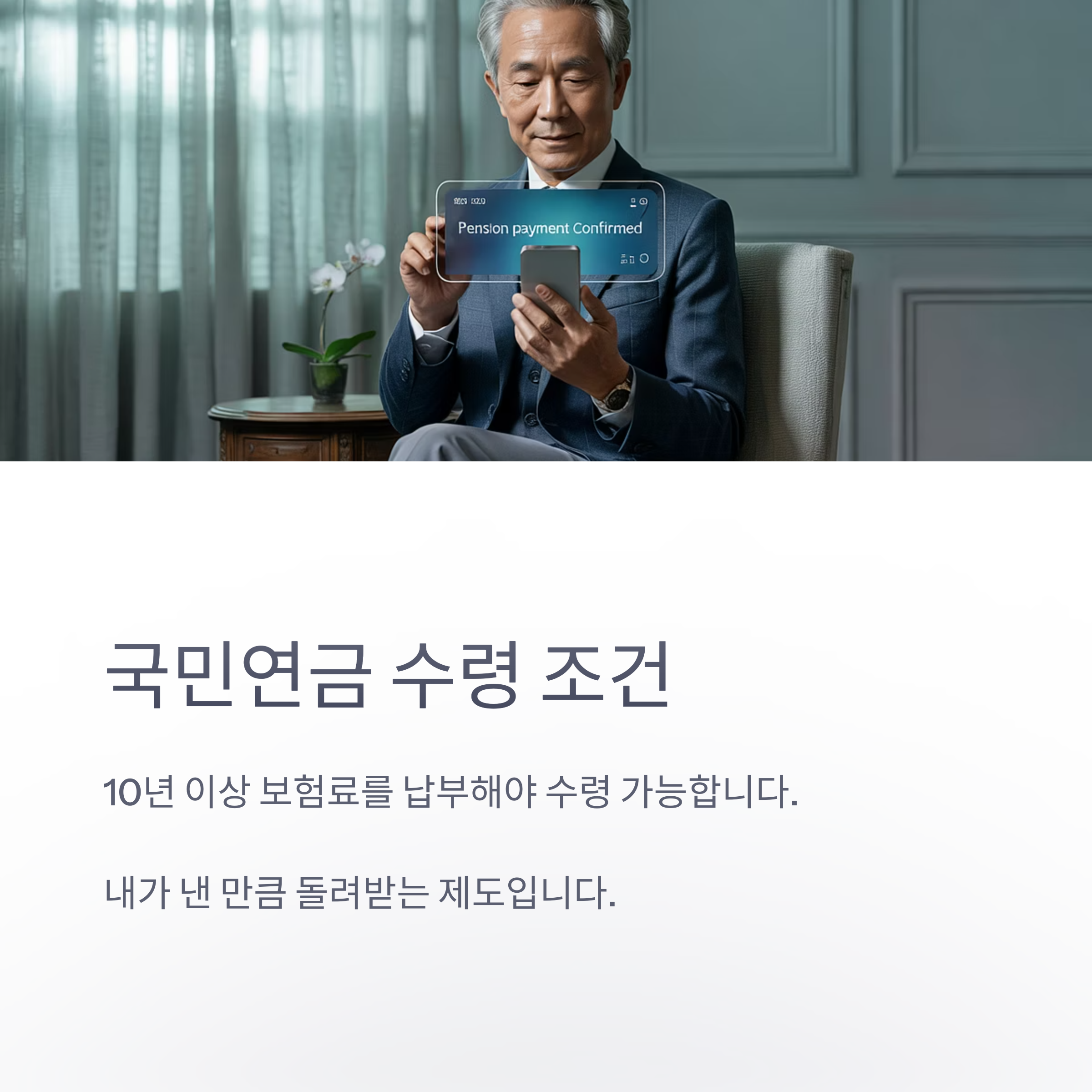 ✔ 국민연금은 10년 이상 보험료 납부해야 수령 가능