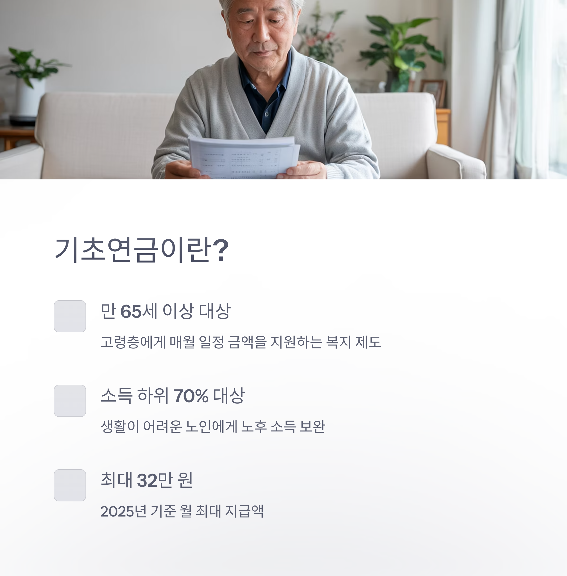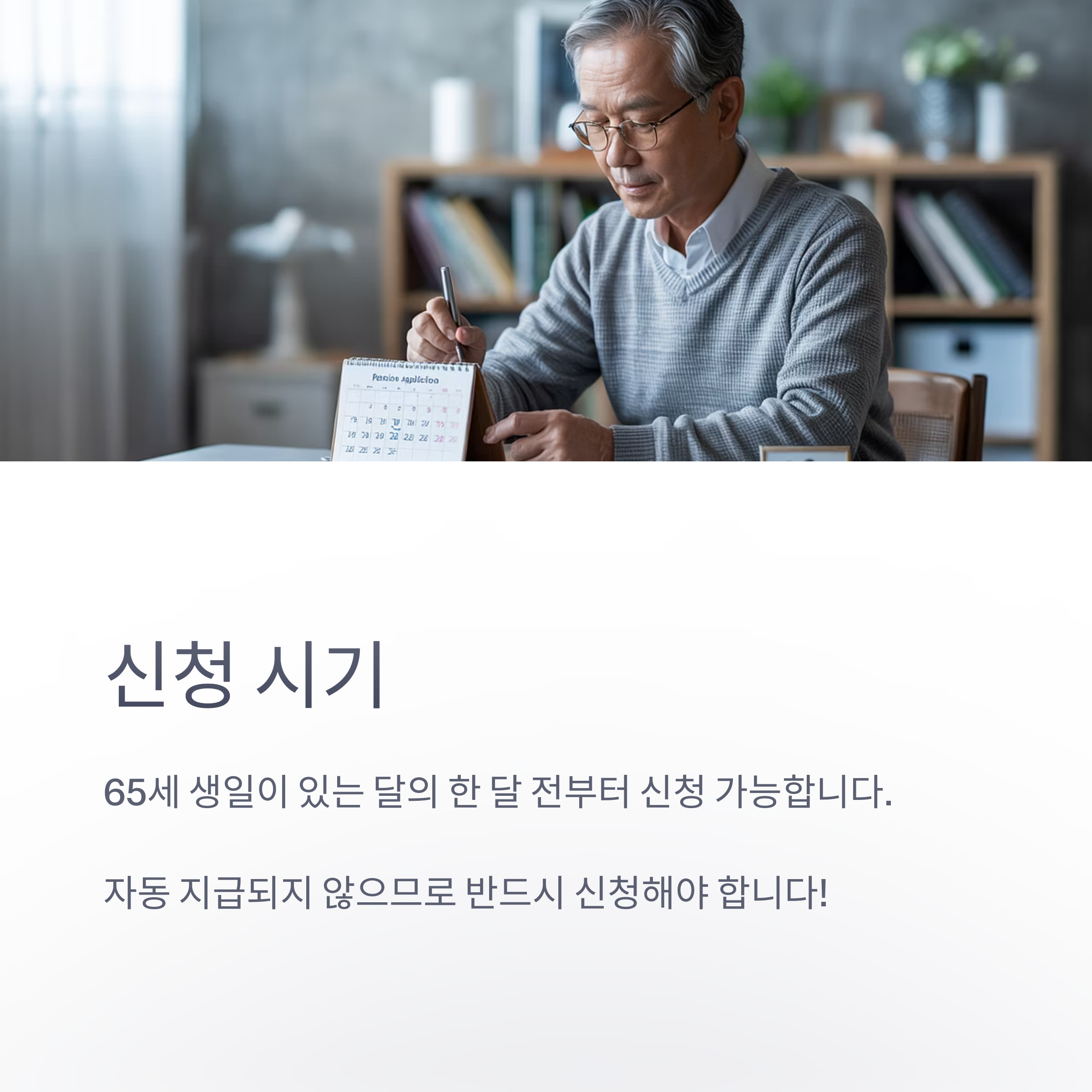 ✅ 기초연금은 나이만으로 자동 지급되지 않으므로 반드시 신청 필요!