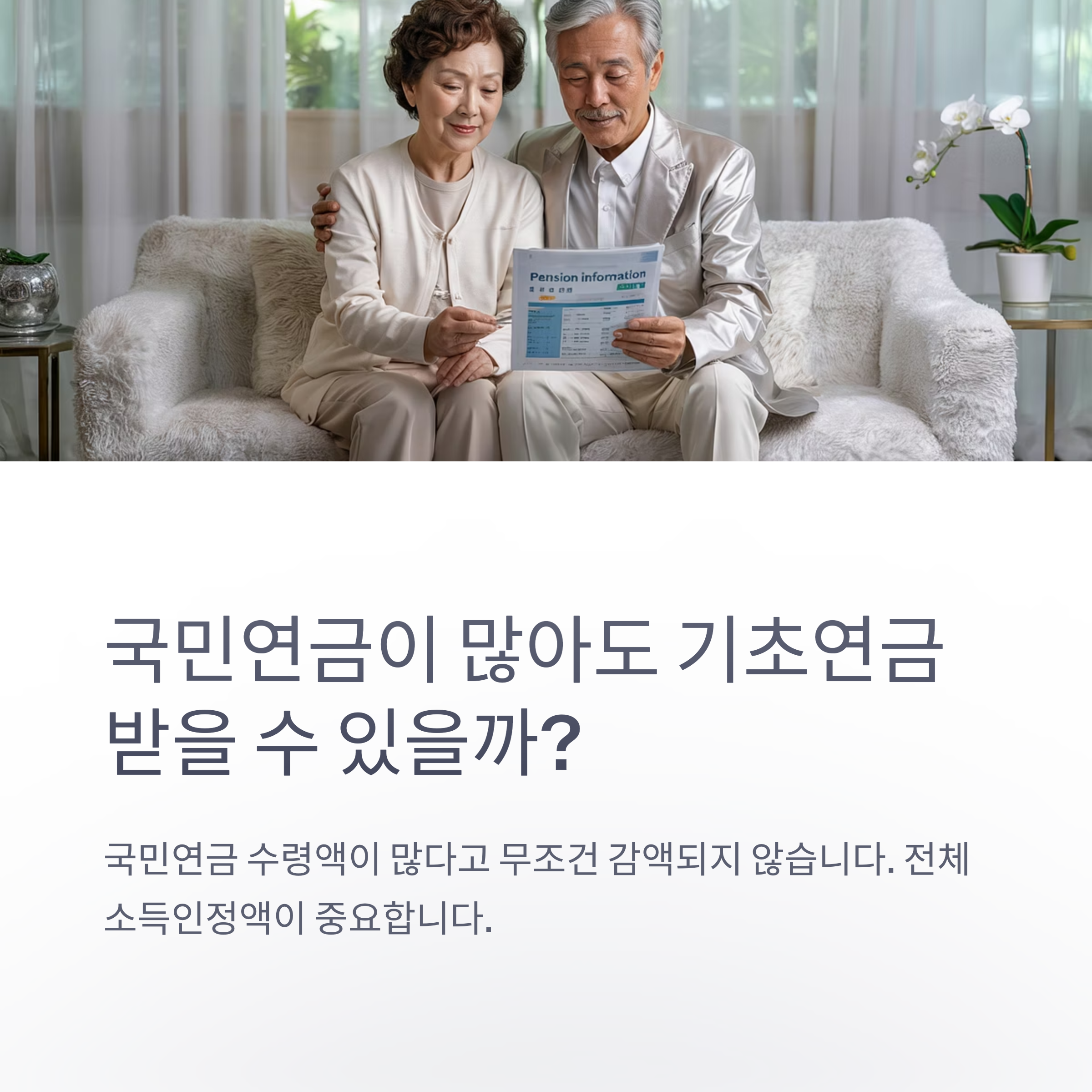 ✔ 국민연금이 많은 경우 → 기초연금 일부 감액