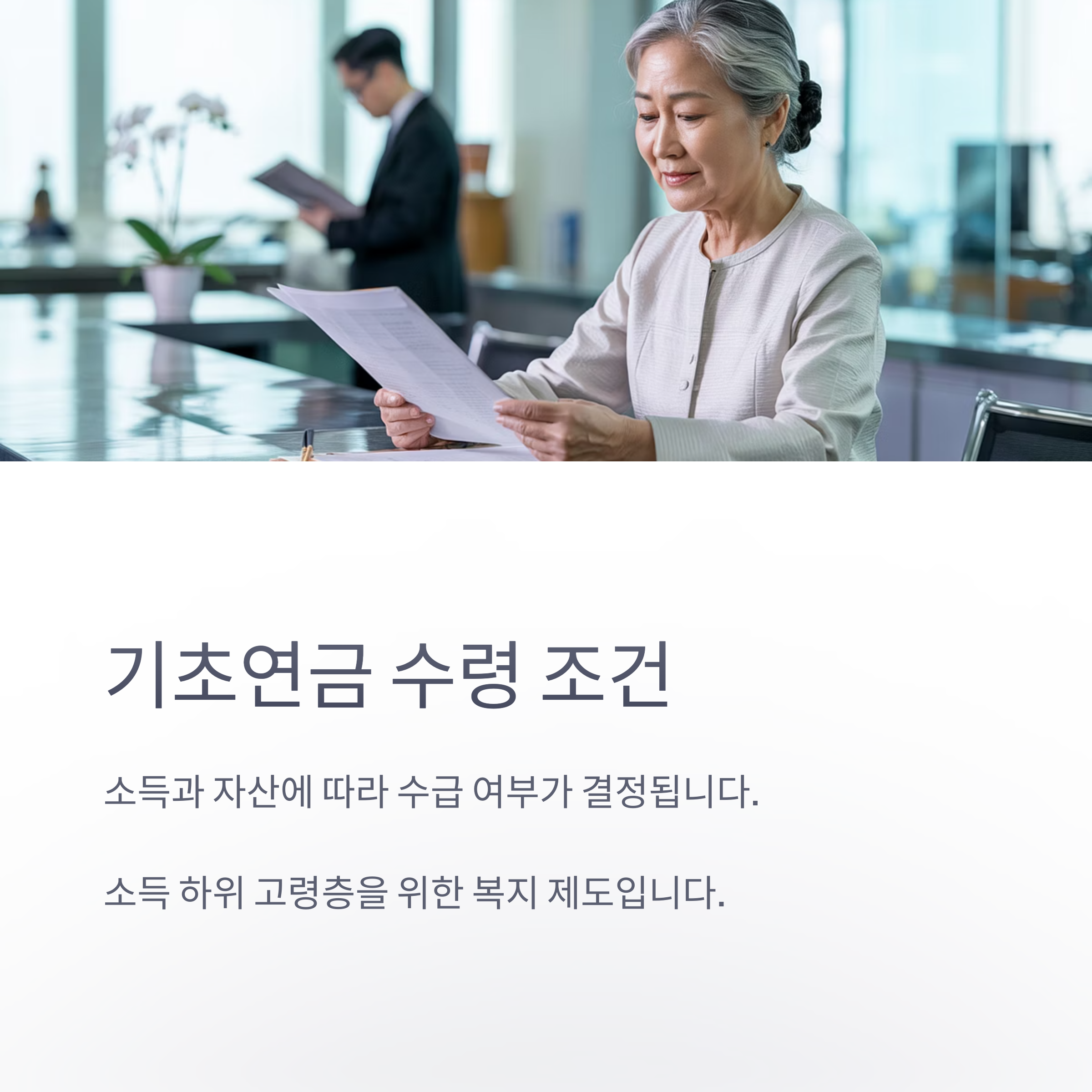 ✔ 기초연금은 소득과 자산에 따라 수급 여부 결정