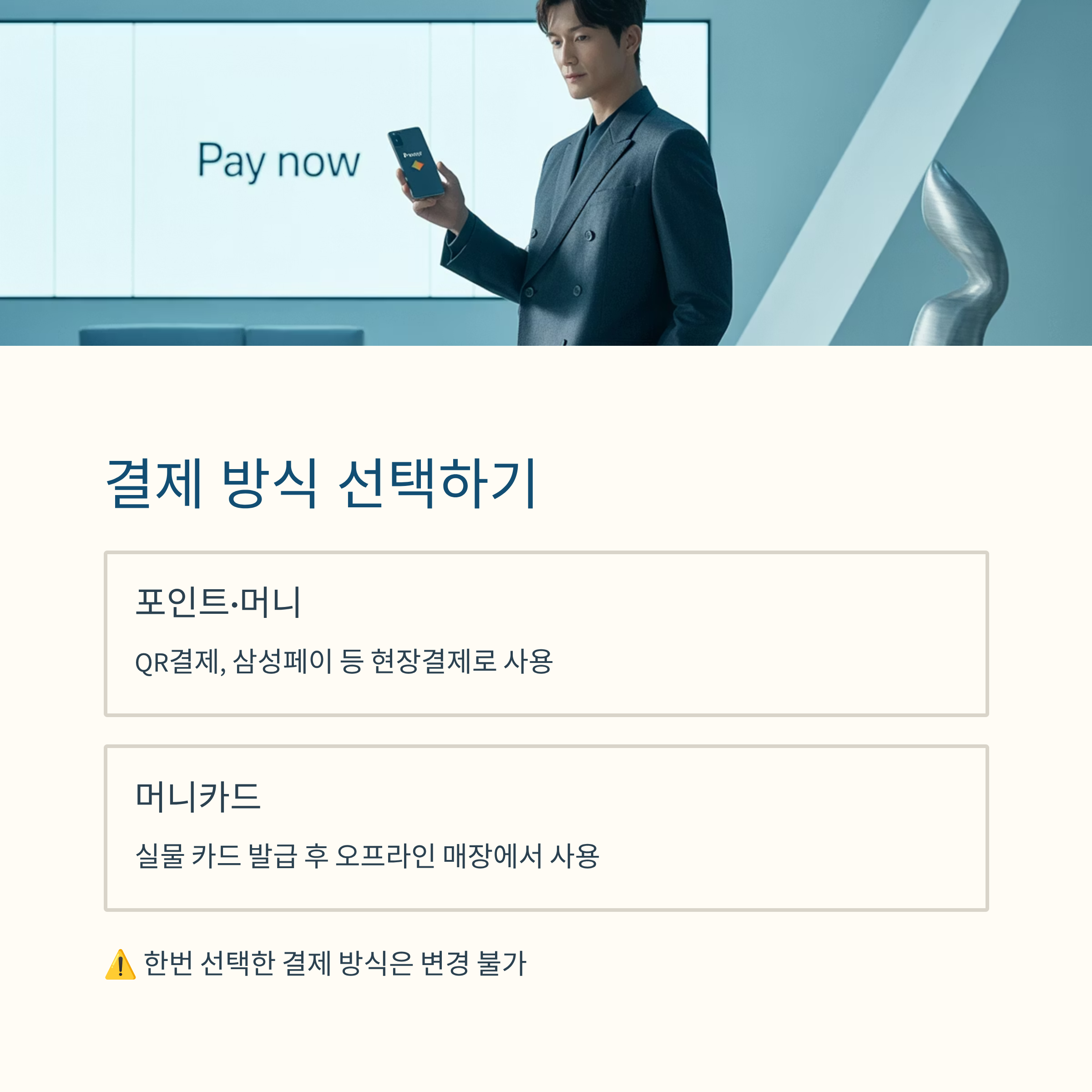 - 포인트·머니: QR결제, 삼성페이 등 현장결제
