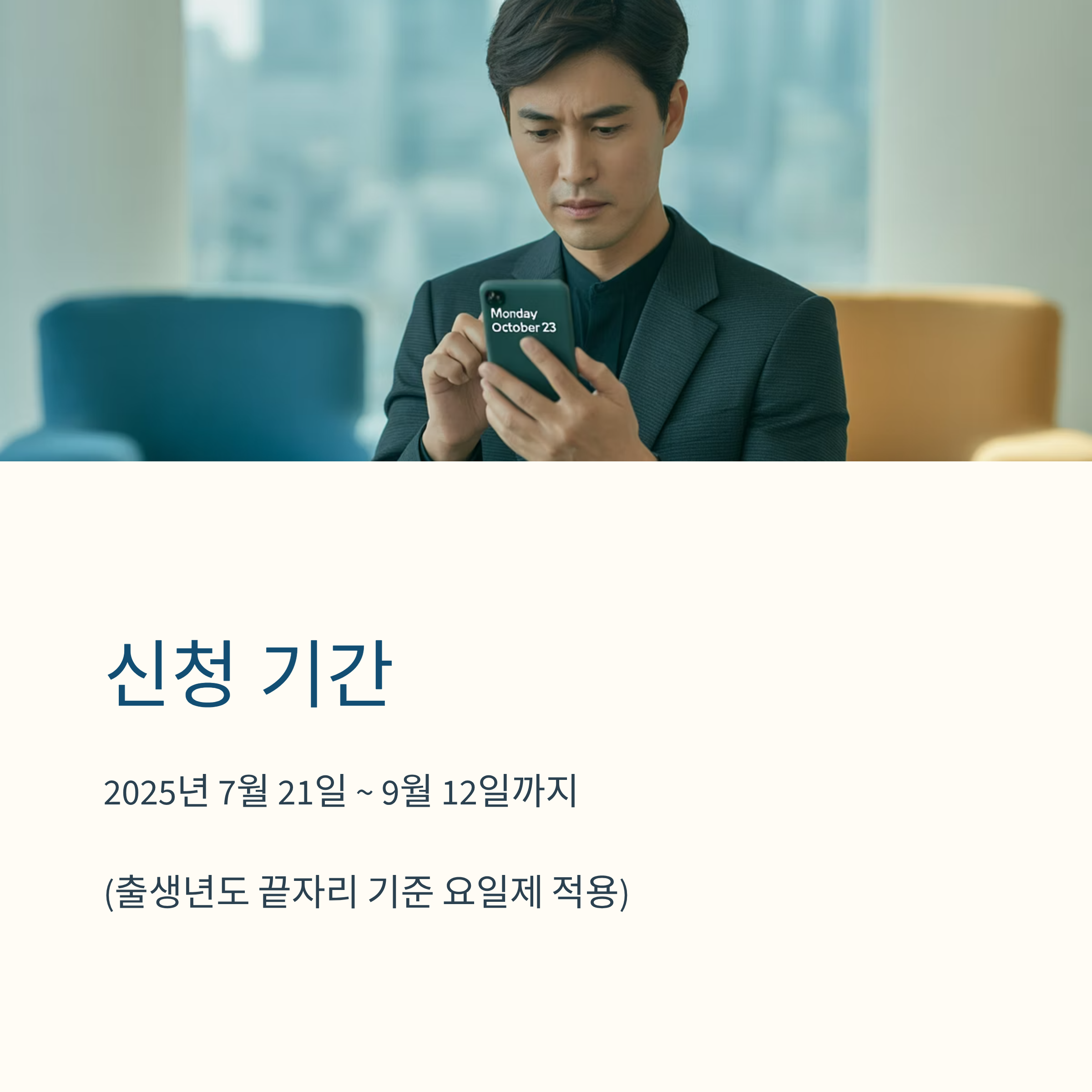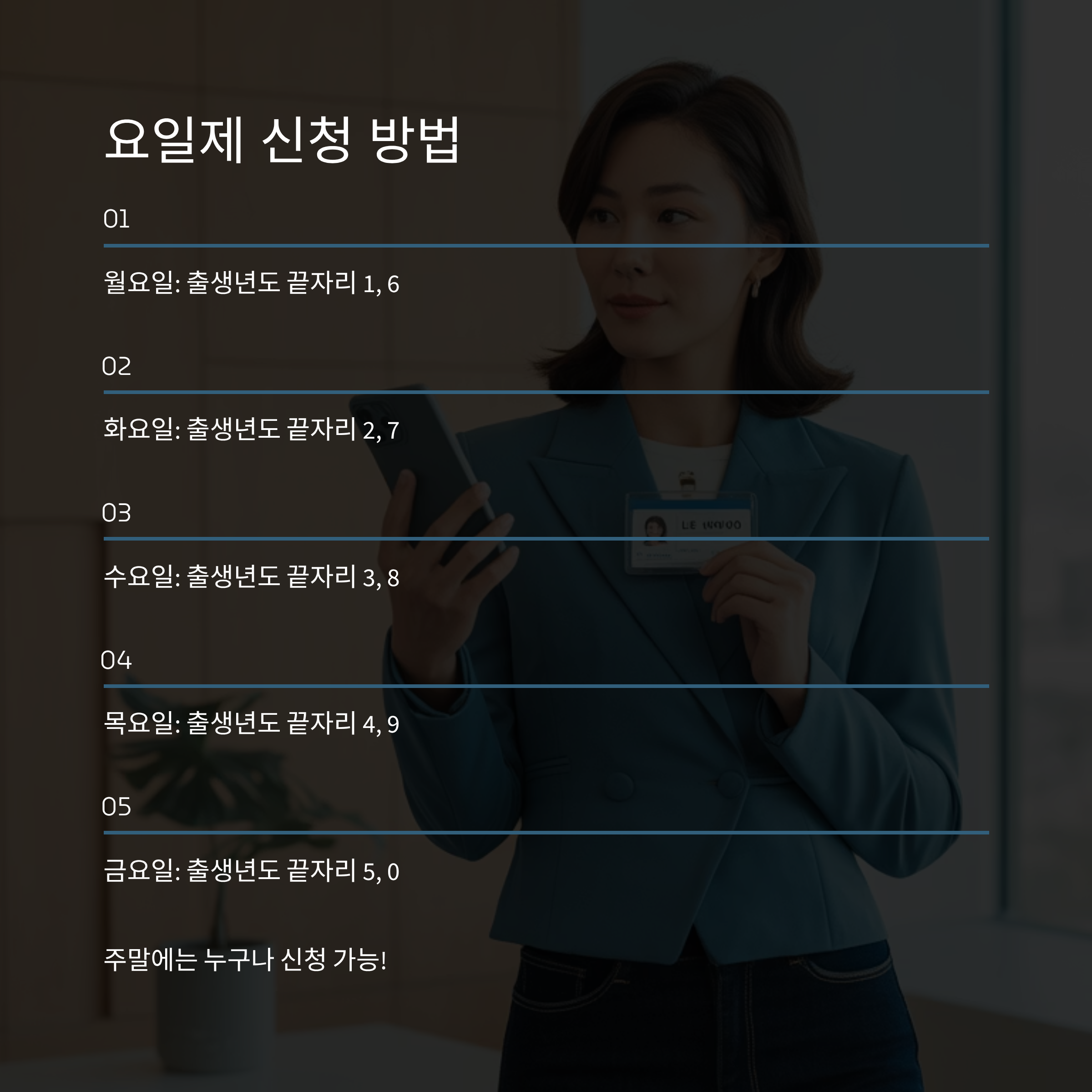 - 신청 기간: 2025.07.21 ~ 2025.09.12 (요일제 적용)
