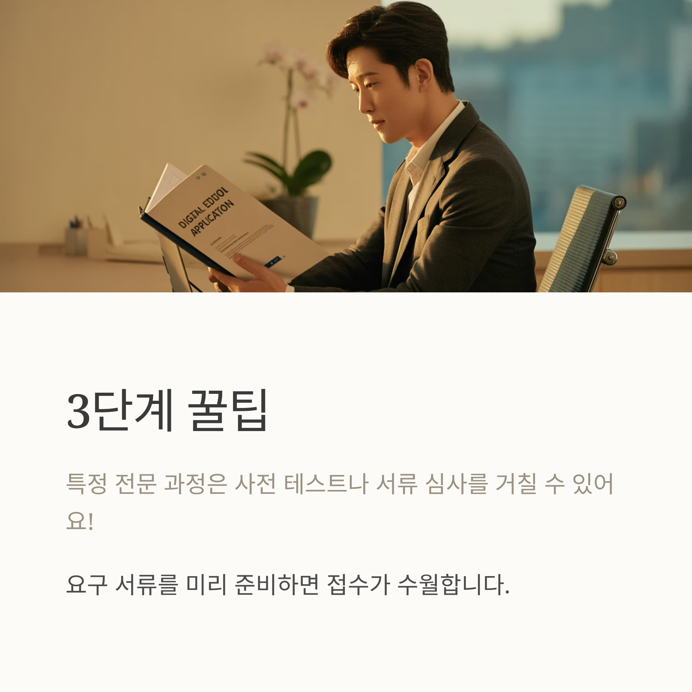 특정 전문 과정은 사전 테스트나 서류 심사를 거칠 수 있으므로, 요구 서류를 미리 준비하면 좋습니다.
