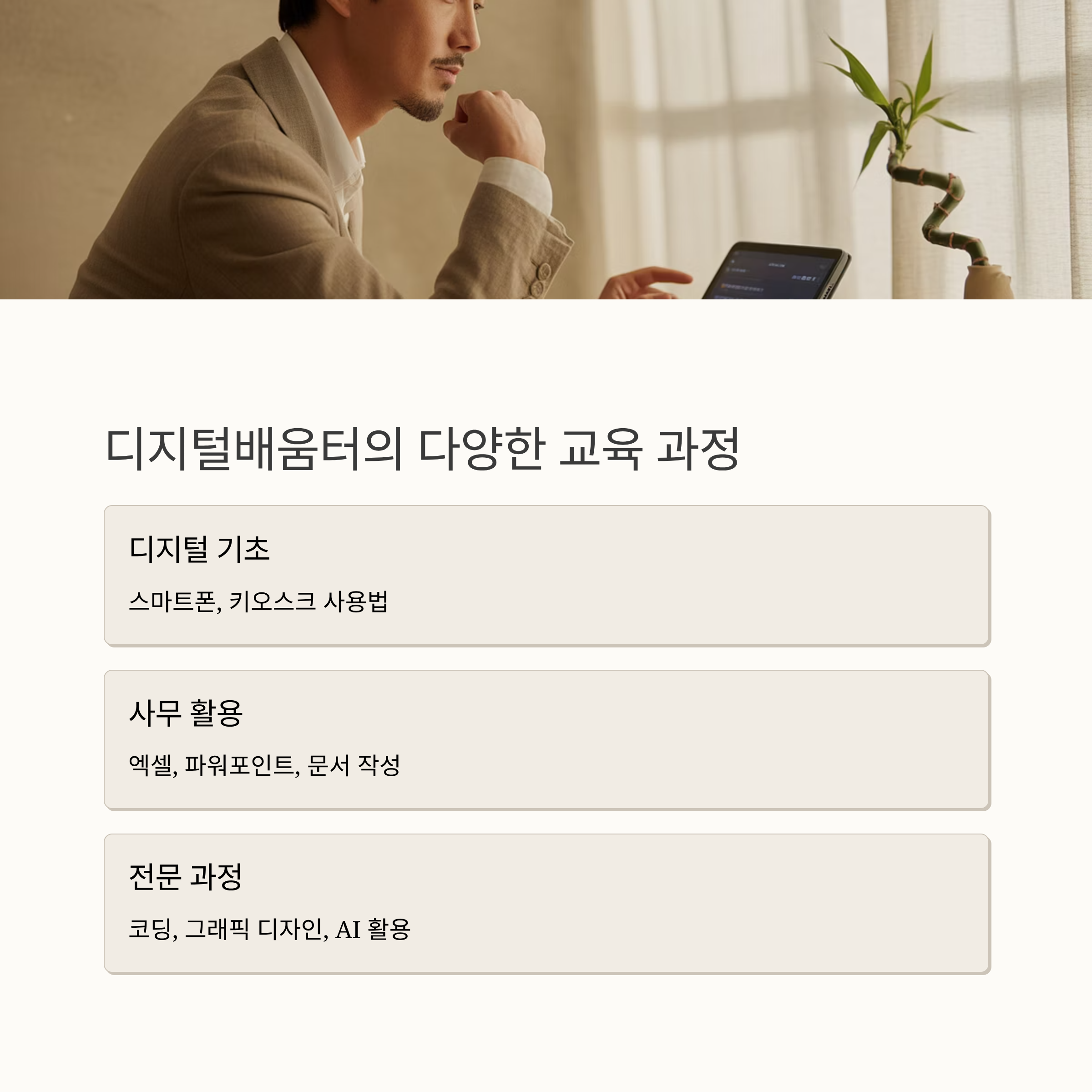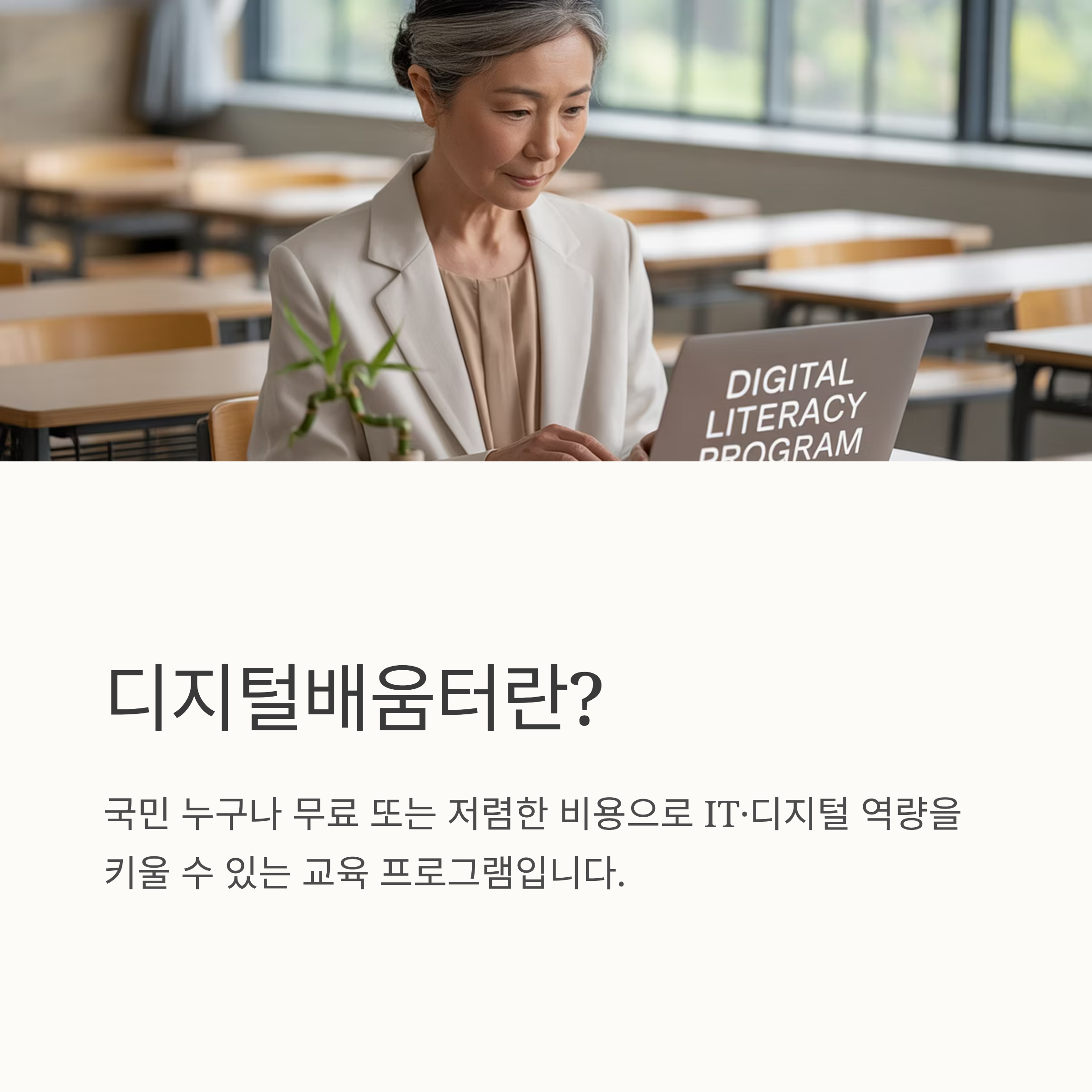 디지털 시대에는 새로운 기술과 지식을 빠르게 습득하는 것이 경쟁력입니다. 정부와 지자체가 운영하는 디지털 배움터는 국민 누구나 무료 또는 저렴한 비용으로 IT·디지털 역량을 키울 수 있는 교육 프로그램을 제공합니다.