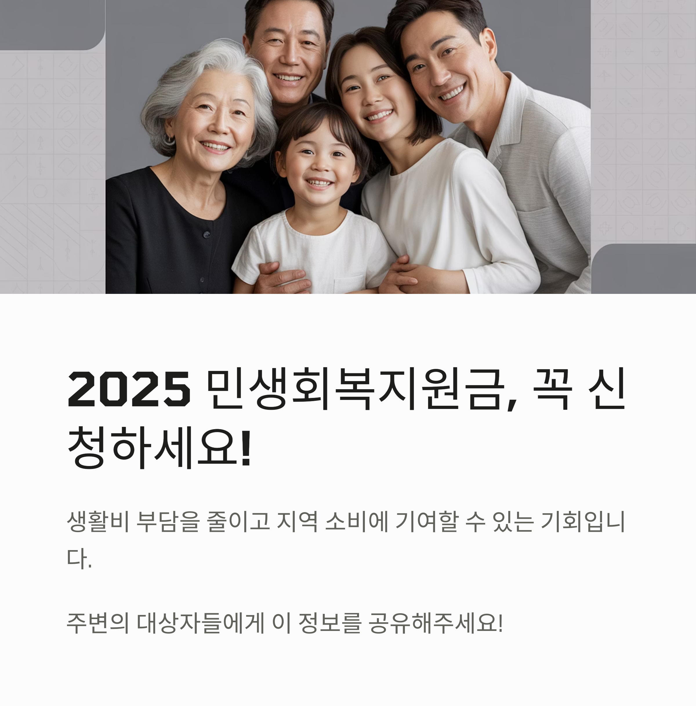 이번 2025 민생회복지원금은 서민 생활 안정 + 지역경제 활성화를 위한 정책입니다.