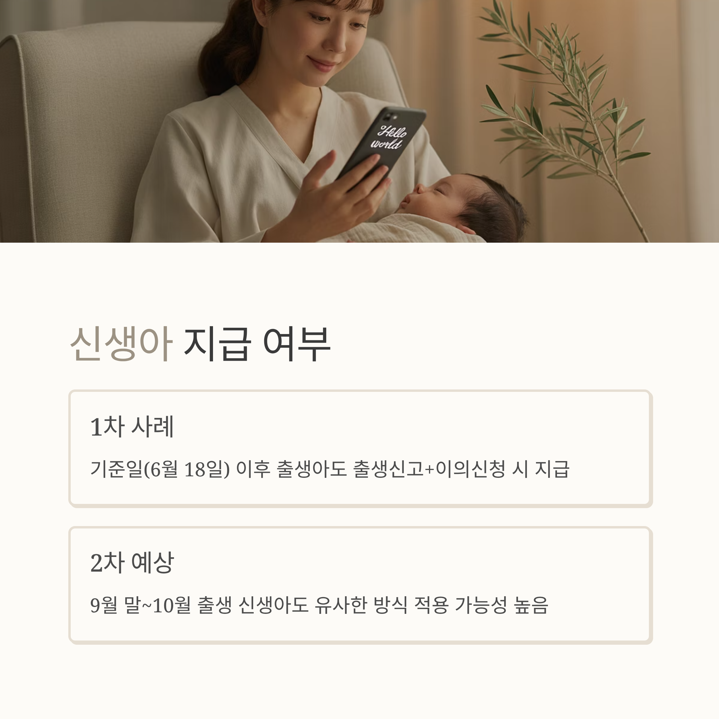 📌 9월 말~10월 출생 예정 신생아는 1차 사례를 참고하되, 최종 지침은 9월 22일 직전 발표 예정