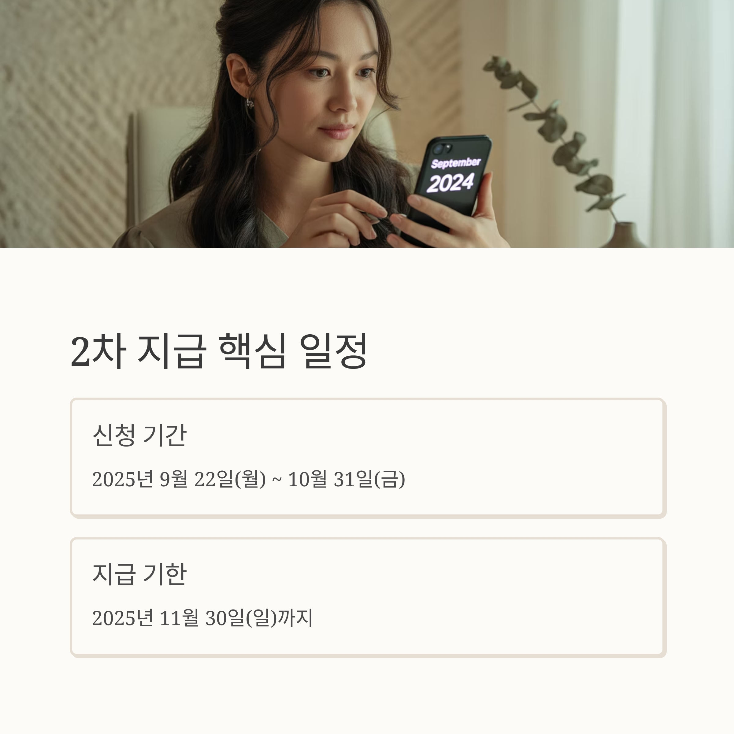 - 지급 기한 : 2025년 11월 30일(일)까지 (1차와 동일)