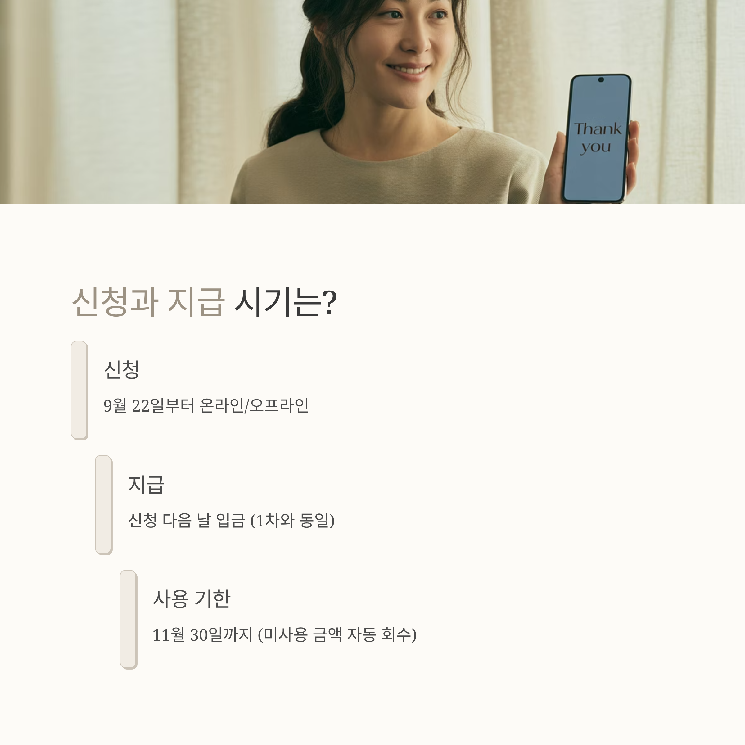 A5. 9월 22일~말 사이 신청하면 추석 전 수령 가능성이 큽니다.