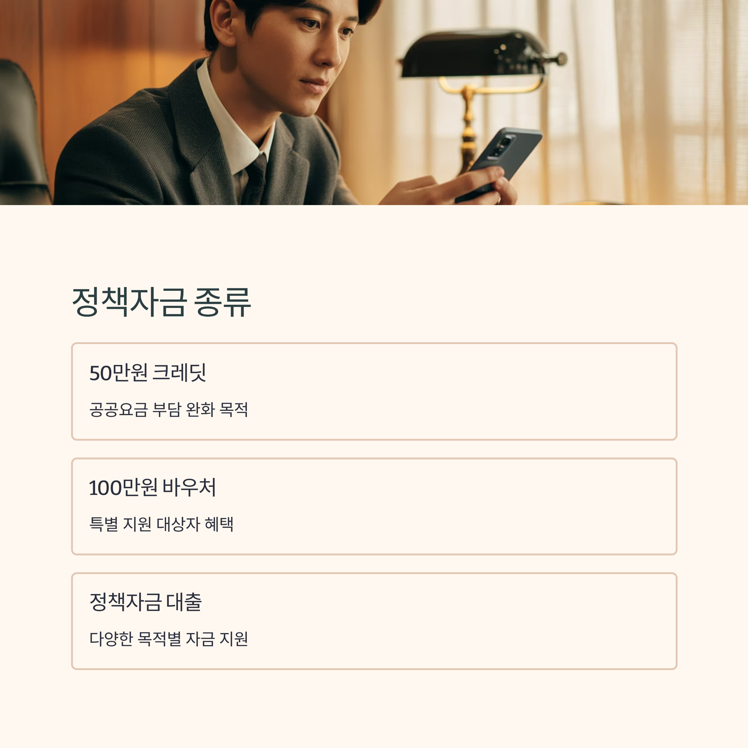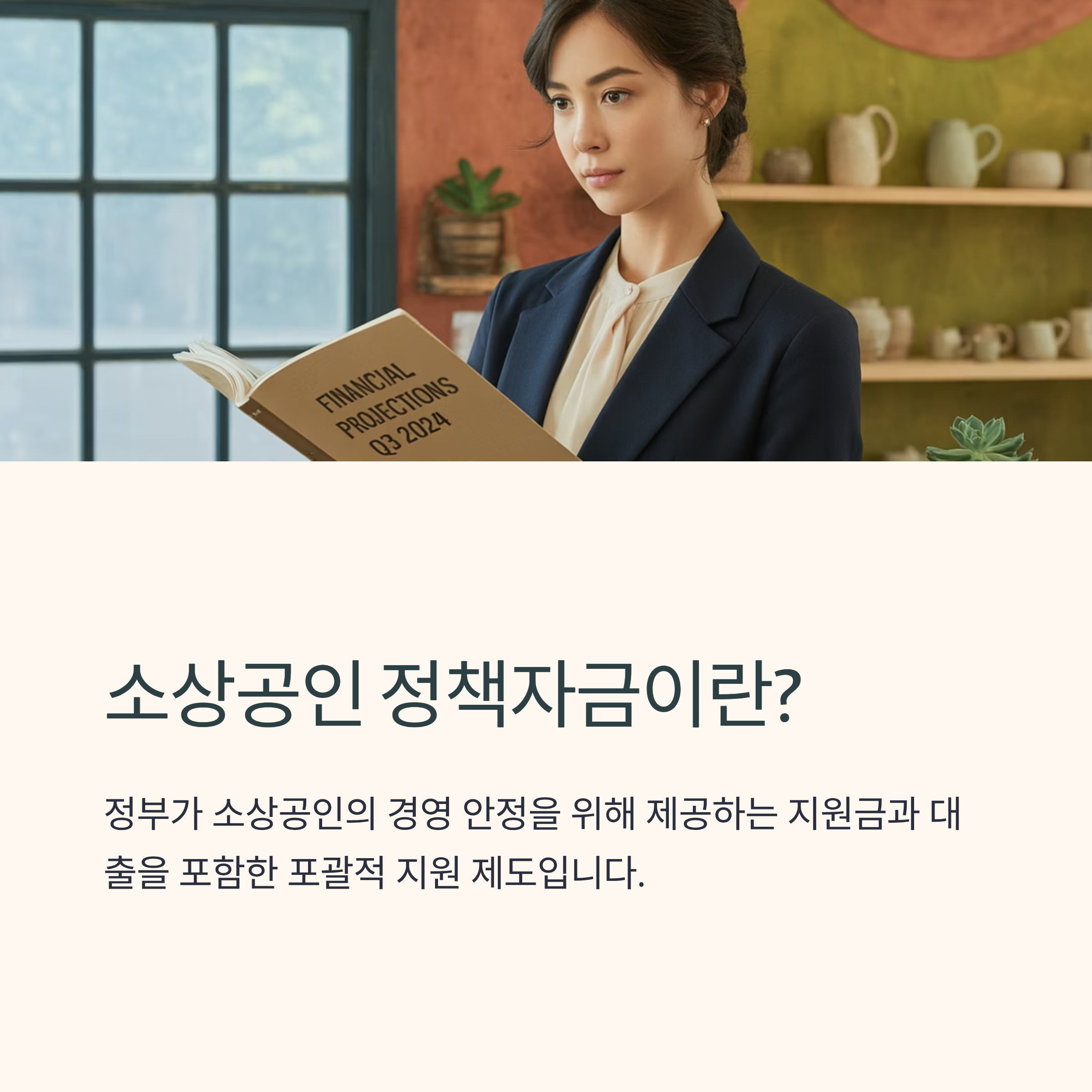 소상공인 정책자금은 정부가 소상공인의 경영 안정을 위해 제공하는 지원금과 대출을 포함한 포괄적 개념입니다. 여기에는 50만원 크레딧, 100만원 바우처, 정책자금 대출 등 다양한 지원 수단이 포함되어 있으며, 목적에 따라 조건이 달라집니다.