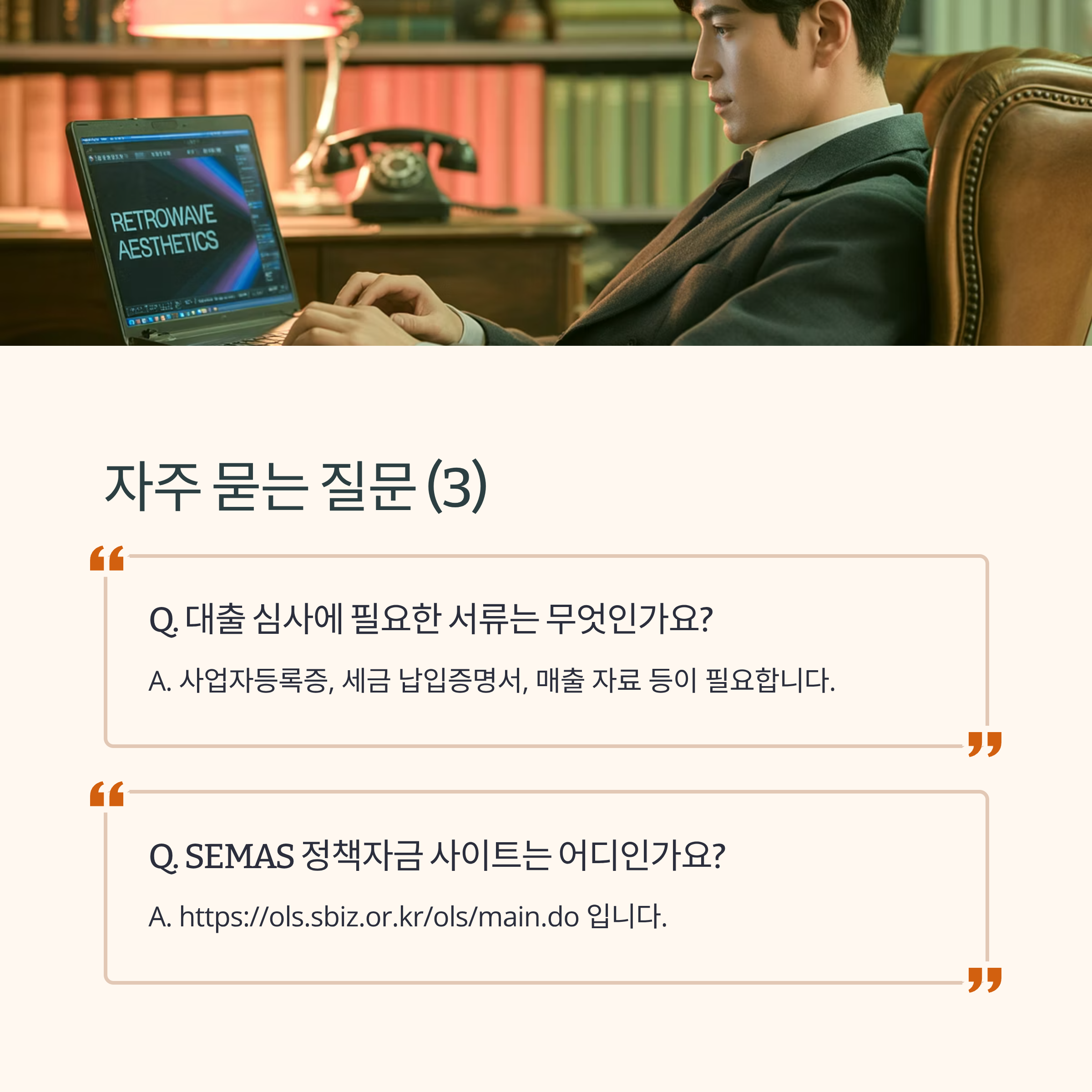 | 정책자금 대출 (일반/성장) | 소상공인 기준(5인 미만) 충족 |