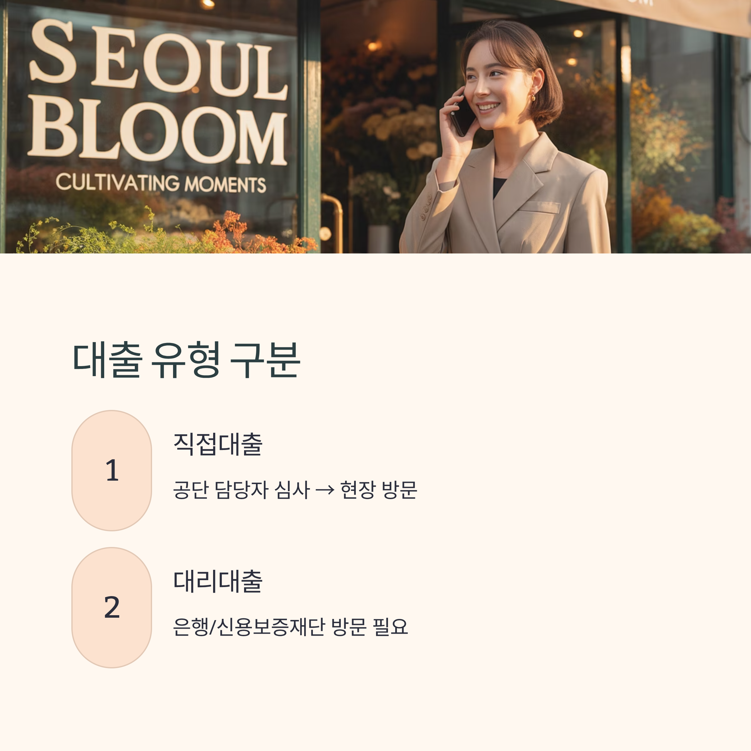 ✔ 직접대출: 공단 담당자 심사 → 현장 방문