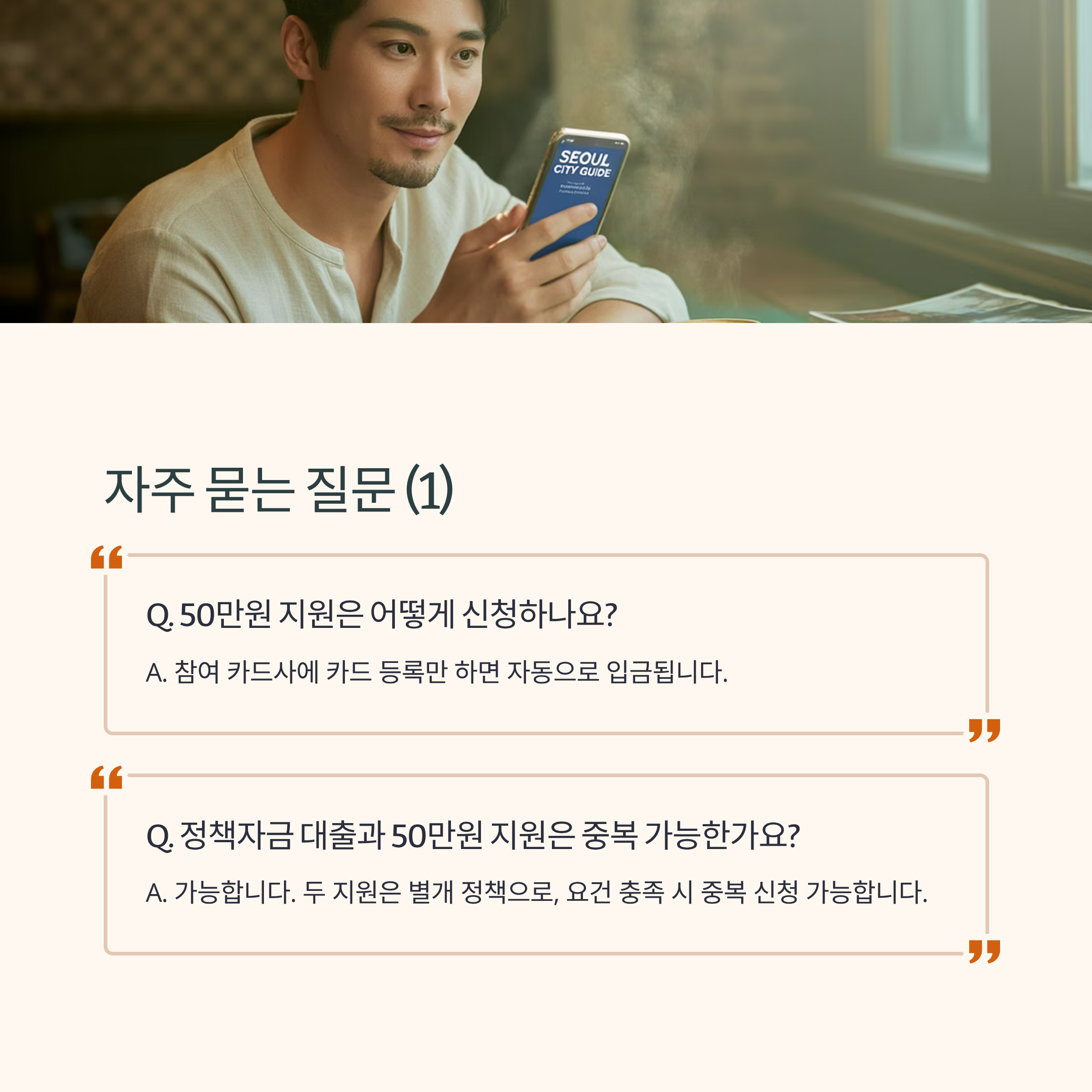 Q2. 정책자금 대출과 50만원 지원은 중복 가능하나요?