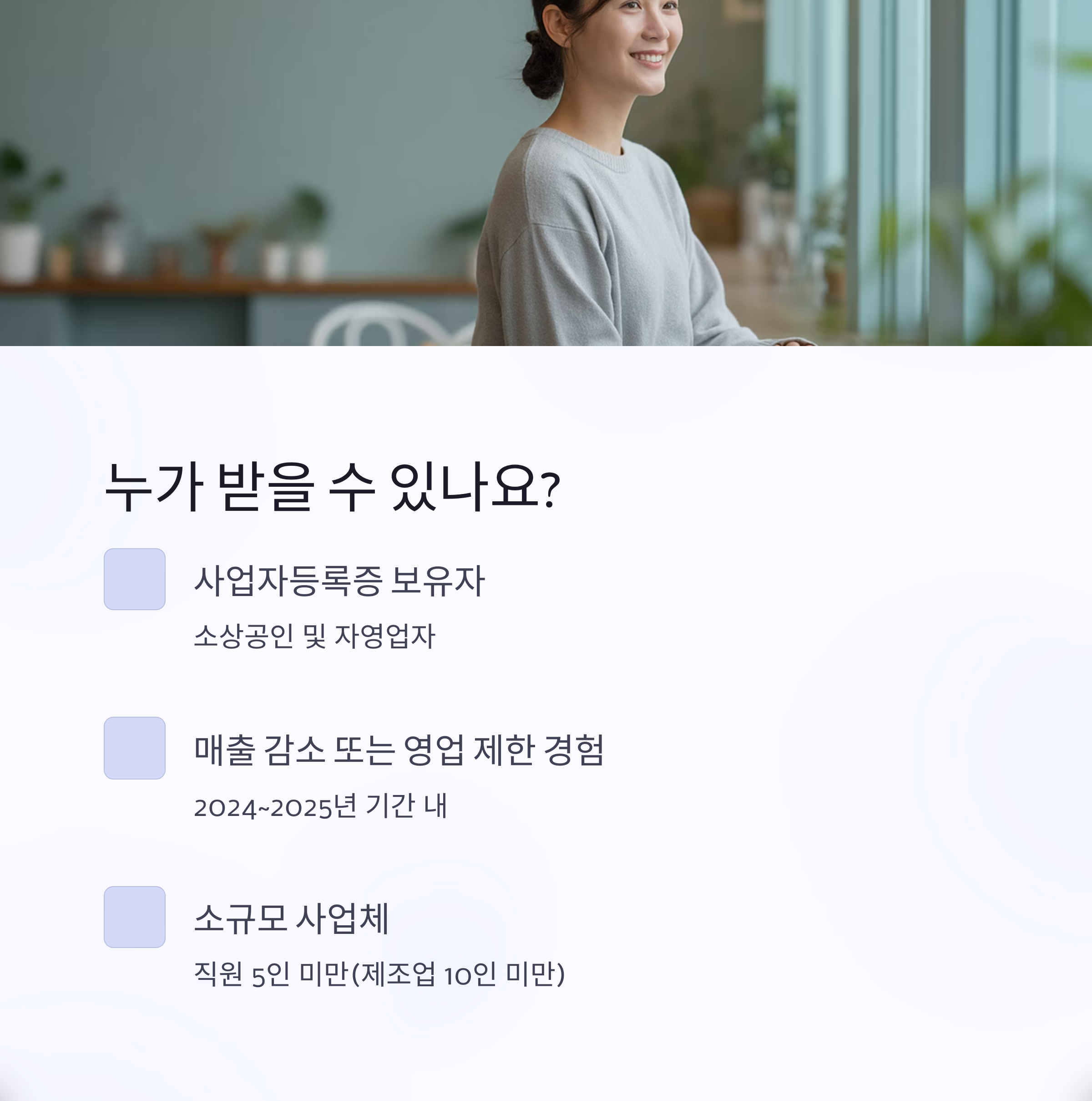 빠르게 신청해, 꼭 필요한 혜택을 누려보세요! 소상공인의 회복과 도약을 응원합니다.