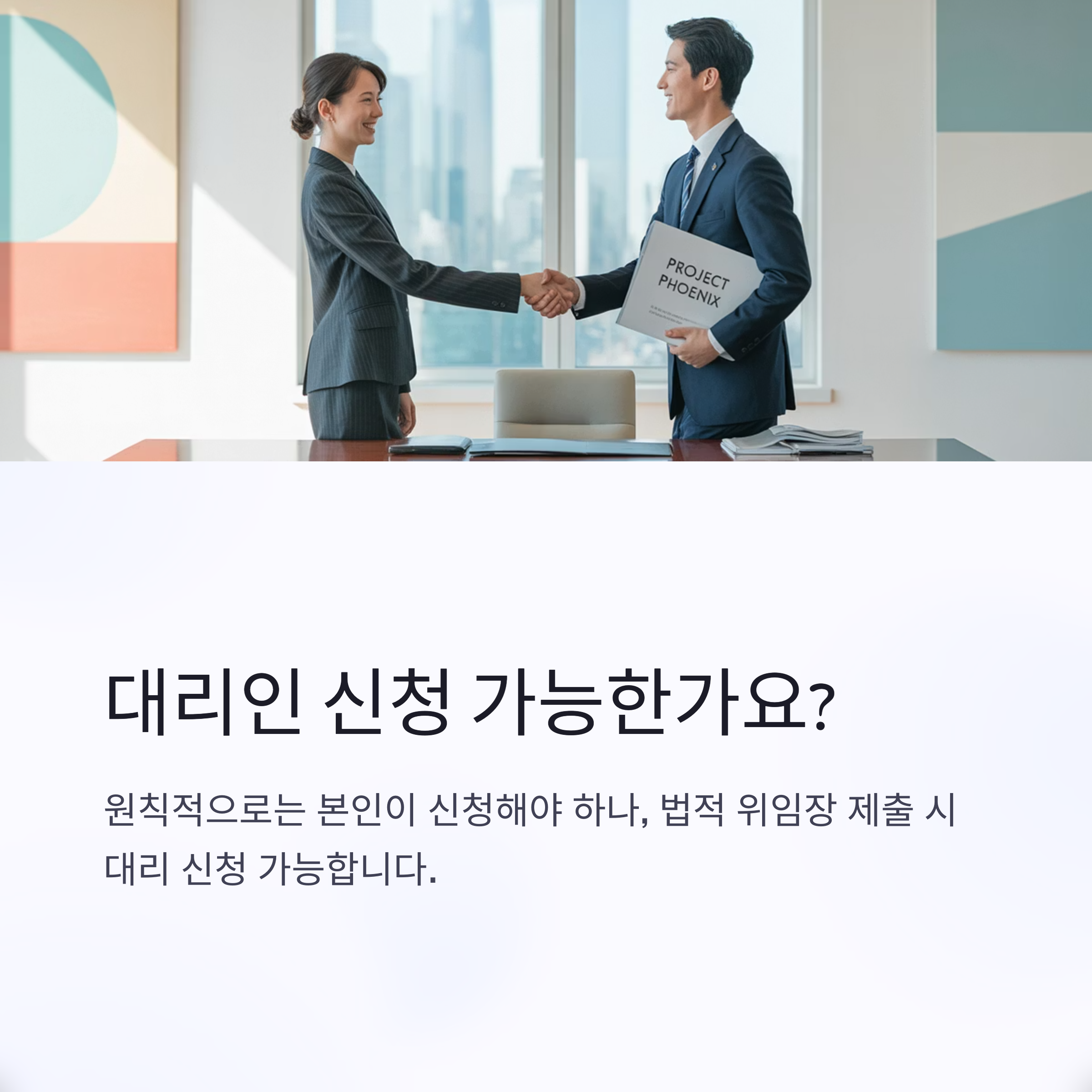 👉 원칙적으로는 본인이 신청해야 하나, 법적 위임장 제출 시 대리 신청 가능합니다.