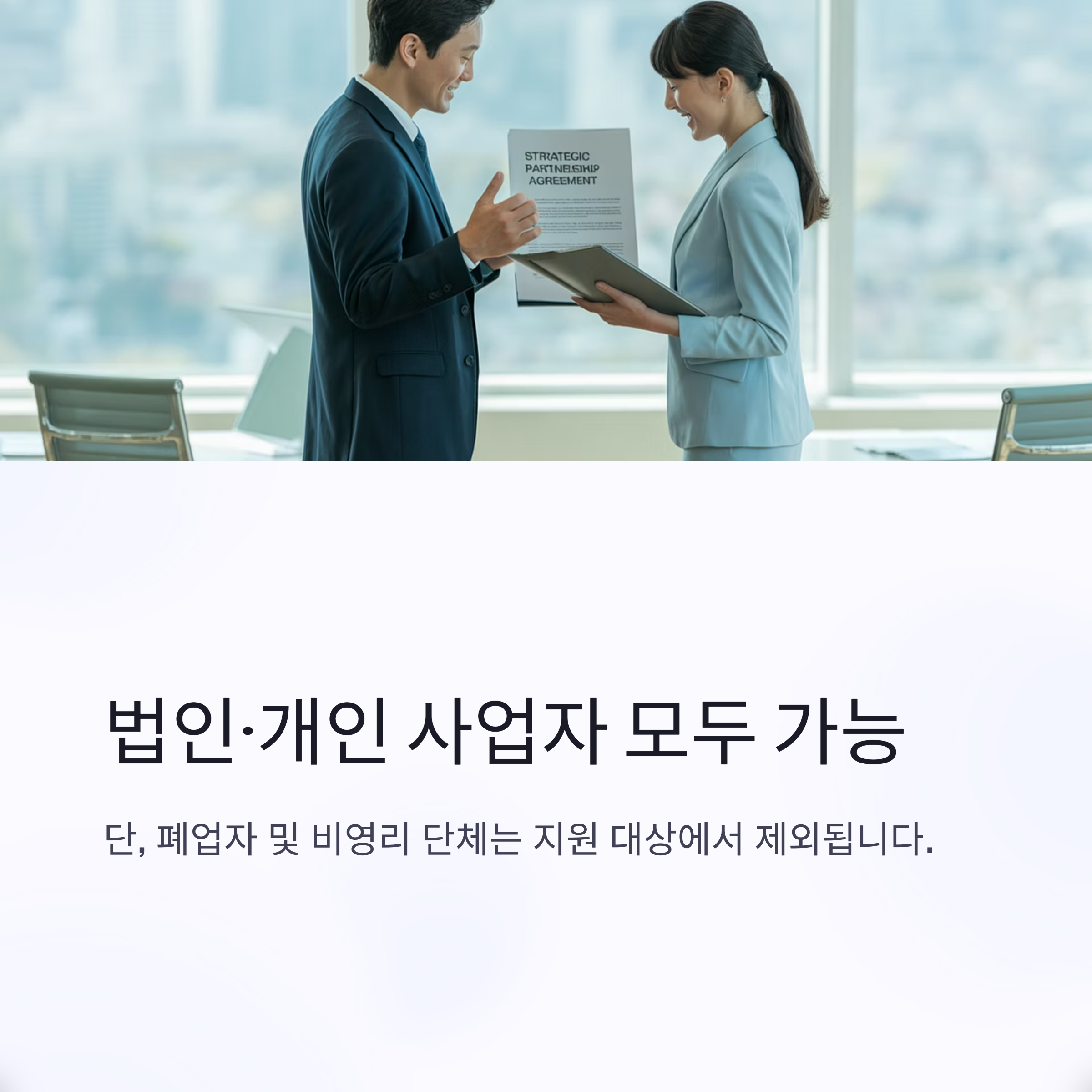 👉 네, 법인·개인 사업자 모두 신청 가능합니다.