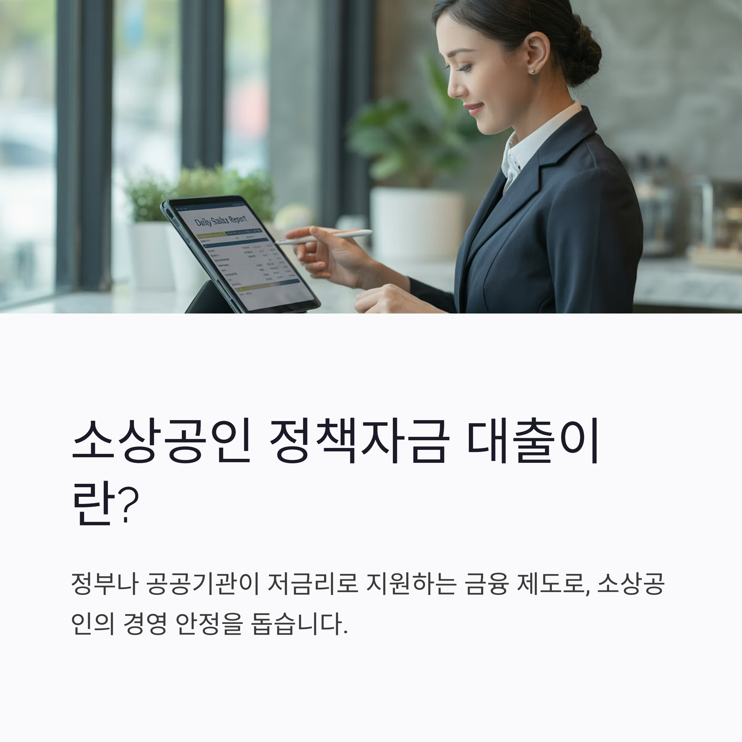 정부 또는 공공기관이 운영하는 저금리 금융지원 제도로, 자금이 필요한 소상공인의 경영 안정을 목적으로 시행됩니다.