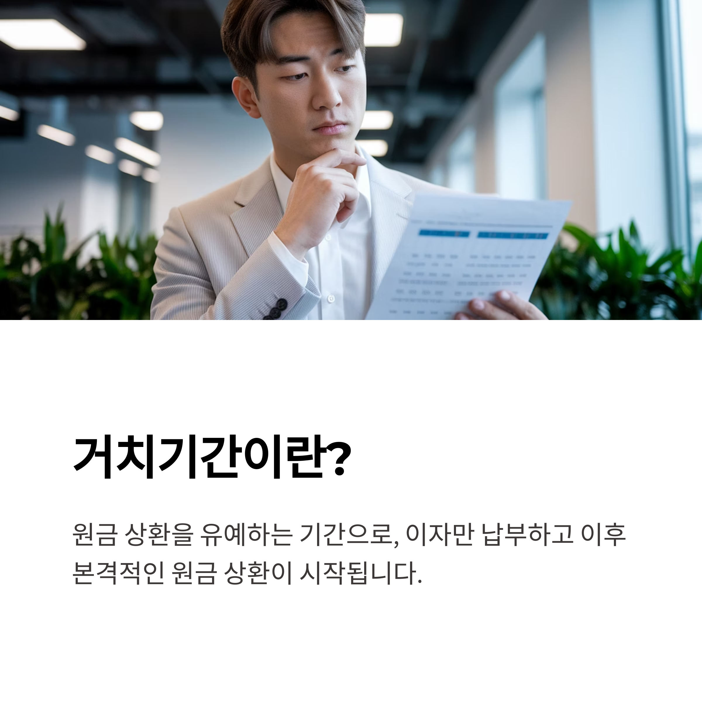 거치기간 동안은 이자만 납부하고, 이후 본격적인 원금 상환이 시작됩니다.