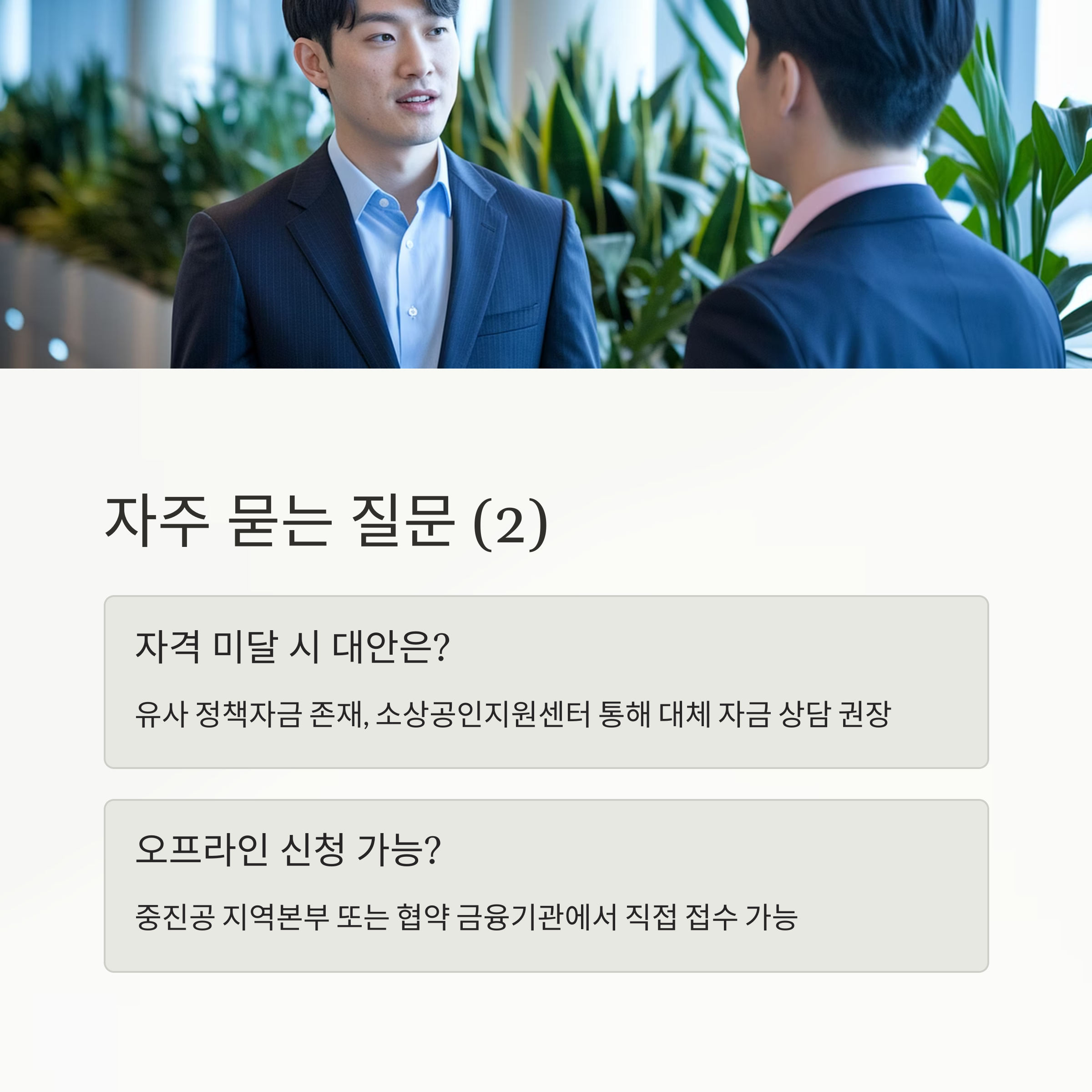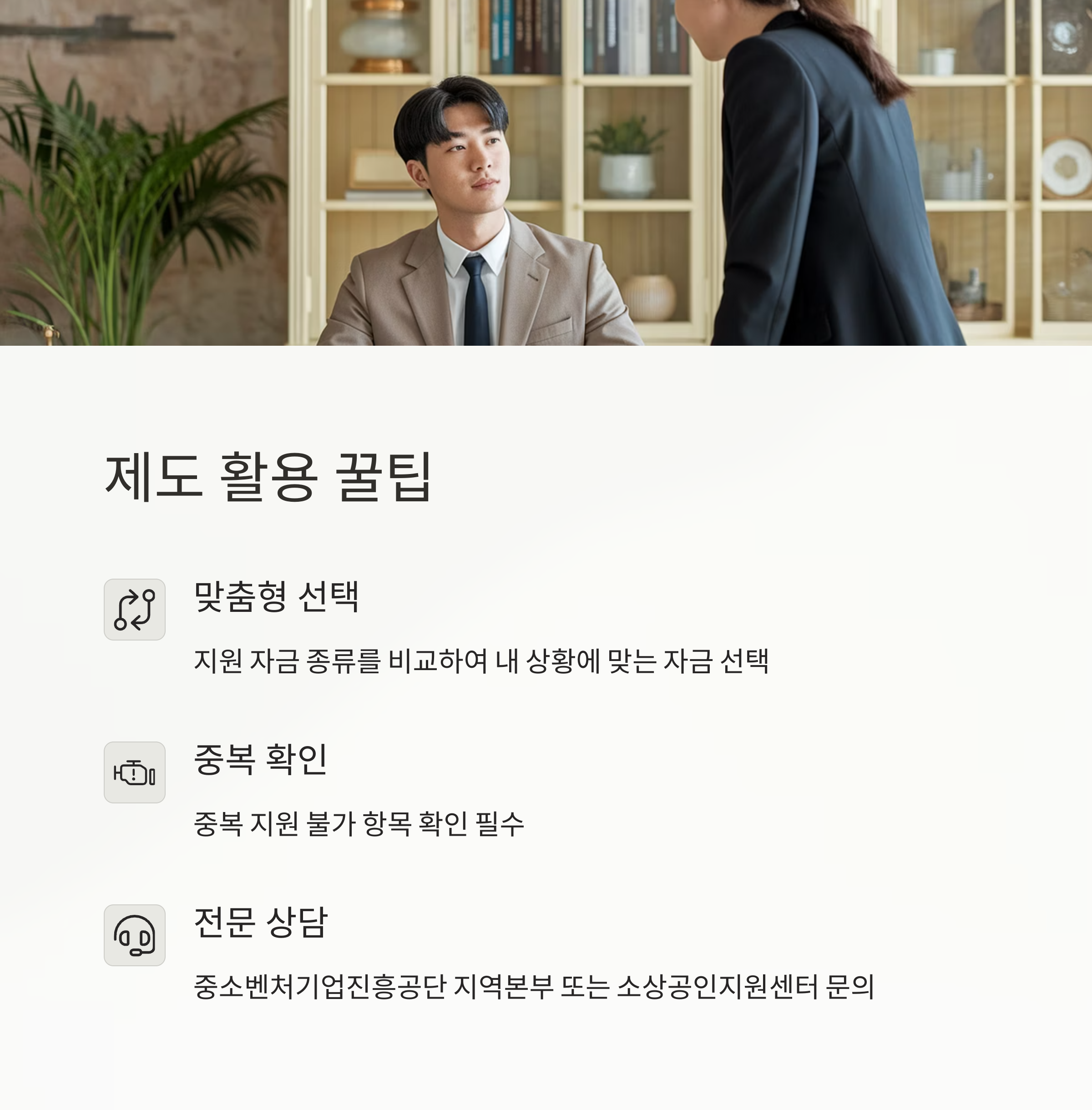 ✅ 중소벤처기업진흥공단 지역본부 또는 소상공인지원센터에 문의하여 상세 상담 가능